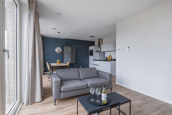 Dit gestoffeerde en gemeubileerde driekamer appartement op de 3e verdieping combineert functionaliteit met comfort en biedt twee slaapkamers , een badkamer met douchecabine en wastafelmeubel, een lichte woonkamer met openslaande deuren die toegang geven tot een eigen balkon op het westen, waar je van de buitenlucht kunt genieten. De luxe keuken is voorzien van inbouwapparatuur zoals vaatwasser, combimagnetron, inductie kookplaat etc, wat bijdraagt aan de uitnodigende sfeer voor gezellige avonden en gastvrije diners. Daarnaast biedt het appartement een ruime gang met toilet, meterkast en inpandige berging met warmte terugwin installatie en wasmachine aansluiting. Het appartement is voorzien van een smaakvolle PVC-vloer met vloerverwarming wat zorgt voor een warme en behaaglijke leefomgeving. Het appartement is tevens voorzien van een separate berging in de onderbouw alsmede een gemeenschappelijke fietsenberging en er is een prive parkeerplaats te koop (op basis van beschikbaarheid).