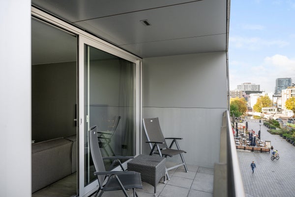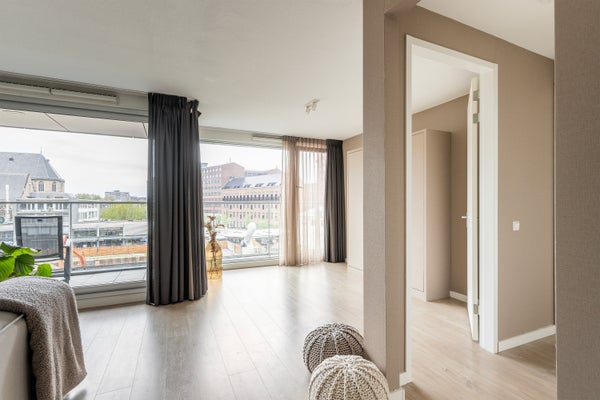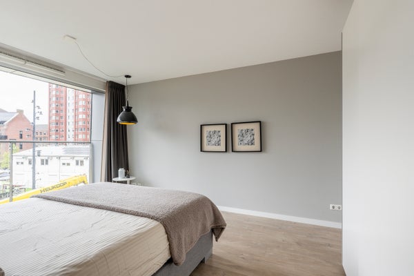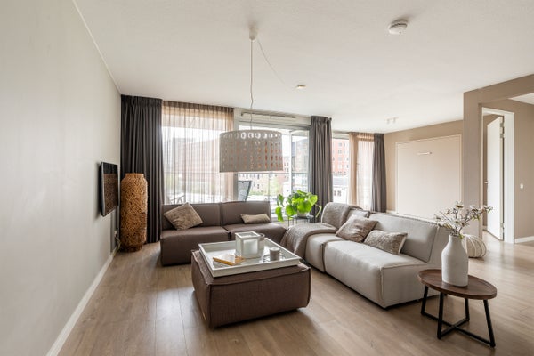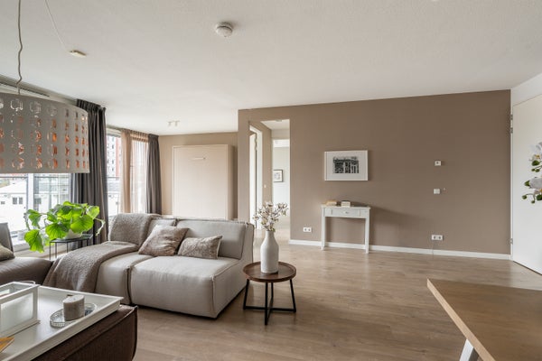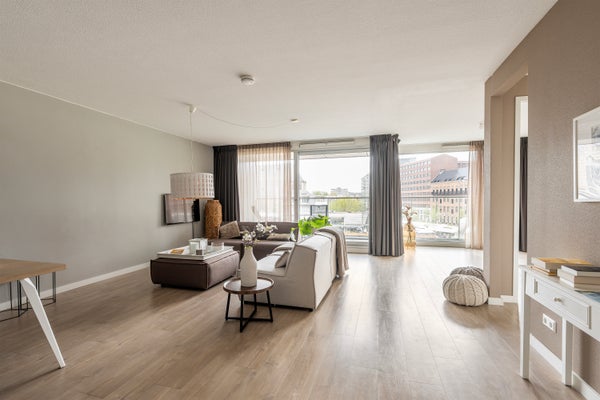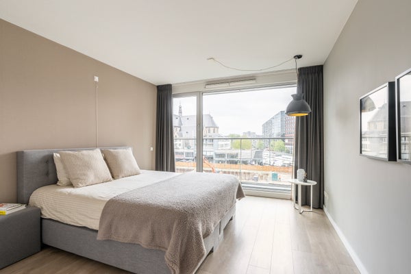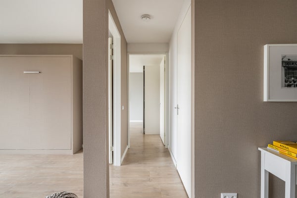 - De portiekflat heeft een woonoppervlakte van 98 m² en beschikt over 3 kamers, waarvan 2 slaapkamers;