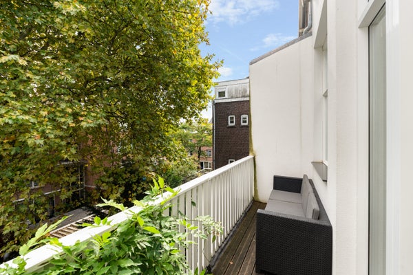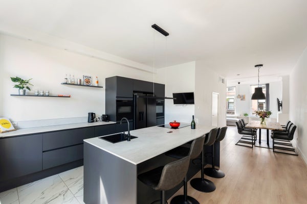 De 1e verdieping heeft een lichte woonkamer en een luxe keuken met moderne inbouwapparatuur. Op de 2e verdieping zijn twee slaapkamers en een moderne badkamer. De 3e verdieping biedt nogmaals twee slaapkamers en een extra badkamer. Het appartement beschikt verder over een CV-ketel en is goed geïsoleerd met energielabel B.