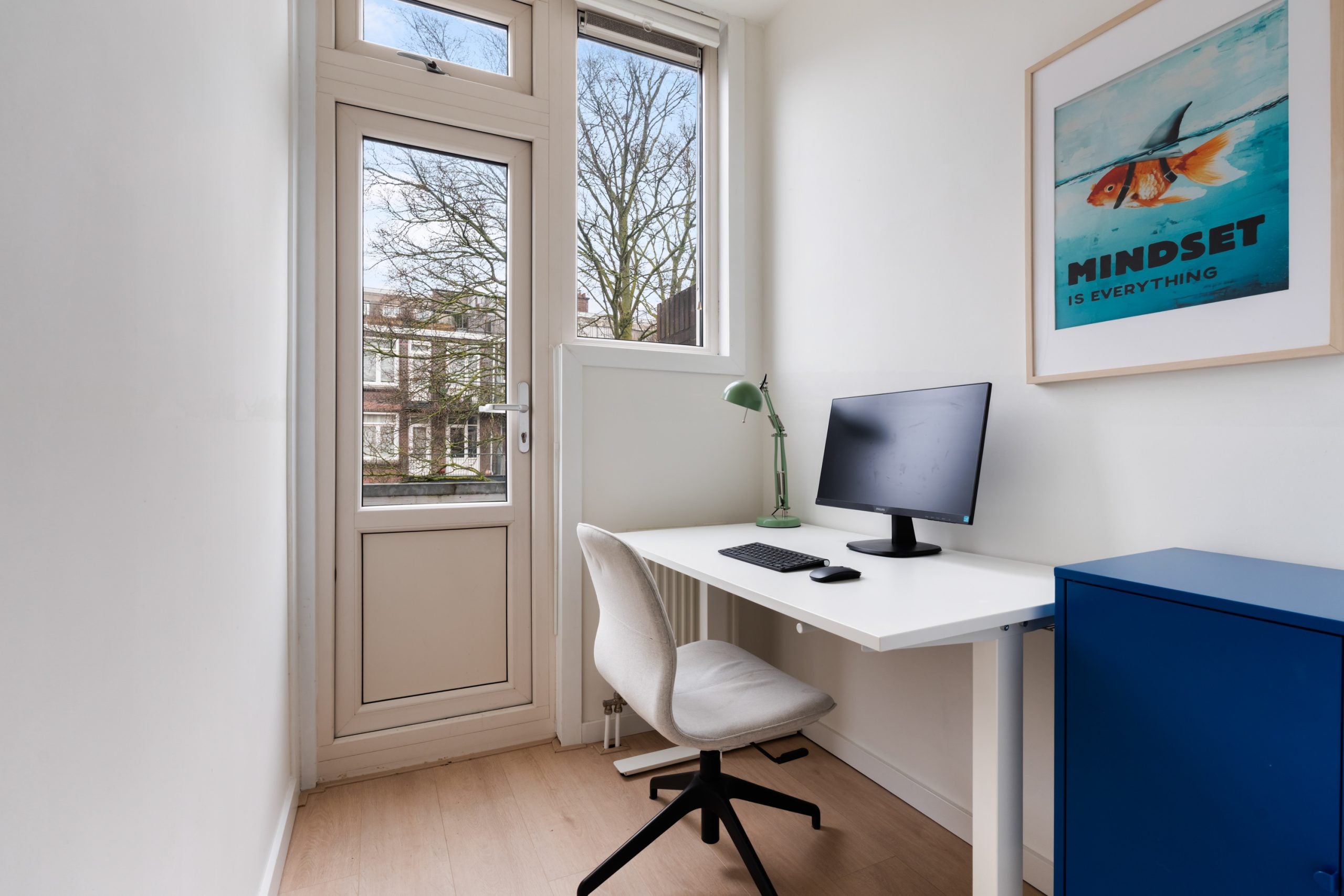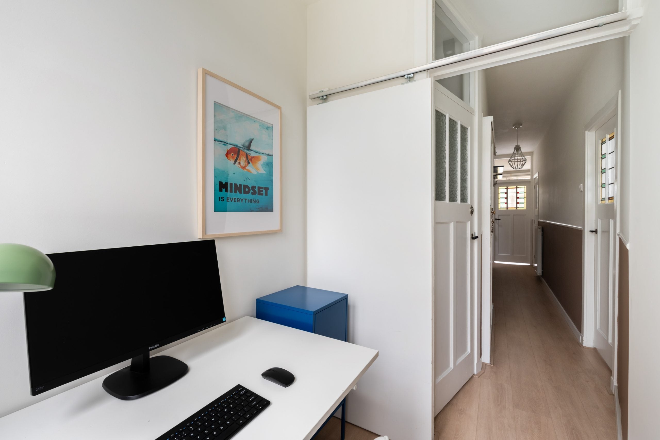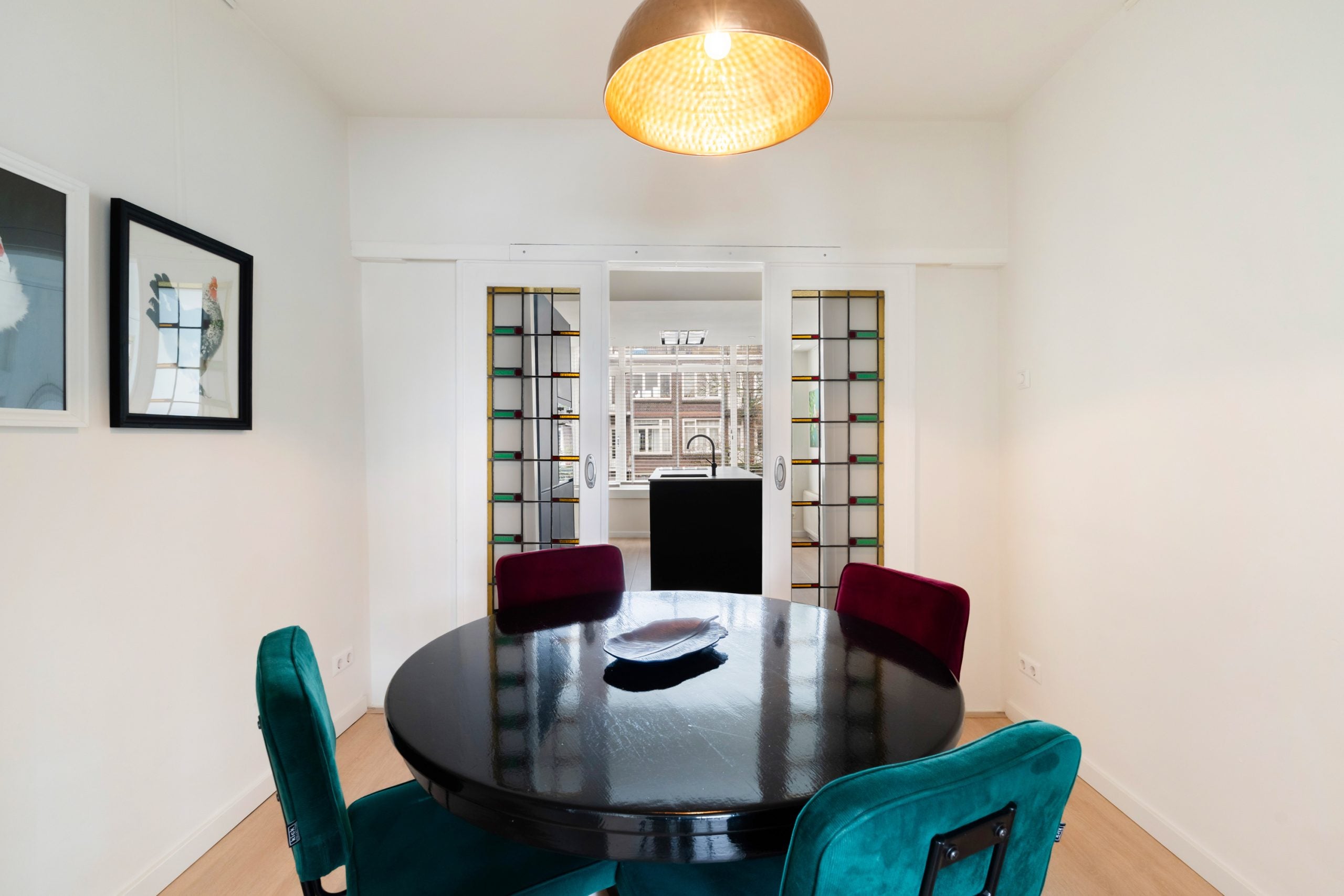 Deze sfeervolle bovenwoning van 73 m2 in Blijdorp straalt authenticiteit uit met zijn jaren '30 details. De woonverdieping omvat drie vertrekken, een aparte werkruimte, en een royale woonkamer met glas-in-lood schuifdeuren. De woonkamer biedt veel natuurlijk licht en kijkt diep de straat in, wat zorgt voor privacy. De en-suite deuren leiden naar de eetkamer en de moderne keuken, compleet met kookeiland en inbouwapparatuur. Op de bovenverdieping bevindt zich de master bedroom met toegang tot het tweede balkon, en een moderne badkamer met (regen)douche. Bijzonder is de ligging nabij ambachtelijke winkels, Vroesenpark en een plantsoen met picknicktafels. De woning heeft twee balkons en is gelegen op eigen grond met een actieve V.v.E. bijdrage van € 75,- per maand.