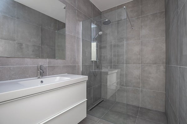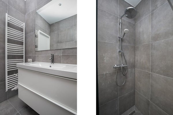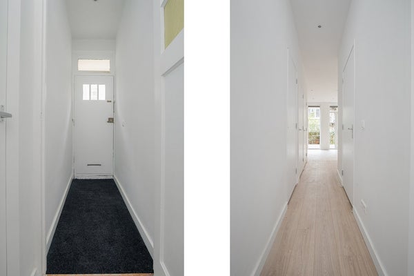 Via de eigen entree kom je binnen in een lange gang die toegang geeft tot de verschillende vertrekken. Aan de rechterzijde bevindt zich de slaapkamer. Loop je verder door, dan tref je de badkamer aan, die is voorzien van een wastafelmeubel en een ruime douche. Iets verder in de gang bevindt zich aan de linkerzijde een separate toiletruimte.