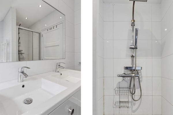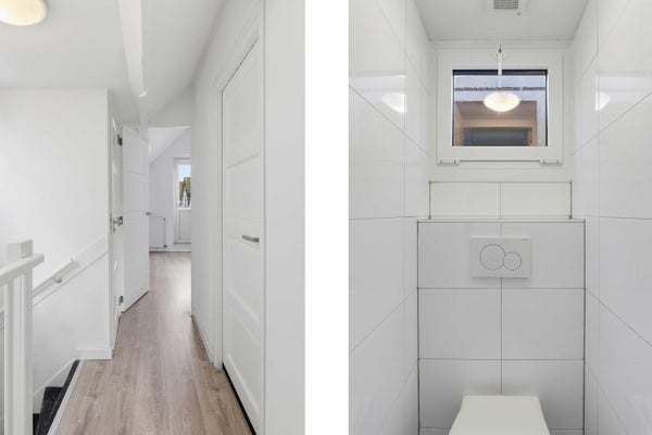 Centraal ligt de badkamer, uitgerust met ligbad, dubbele wastafel en douche. Daarnaast is er een separaat toilet op de overloop — extra comfort voor gezinnen of gasten.