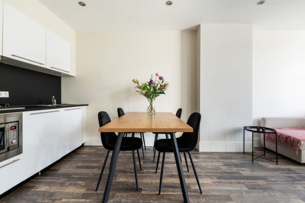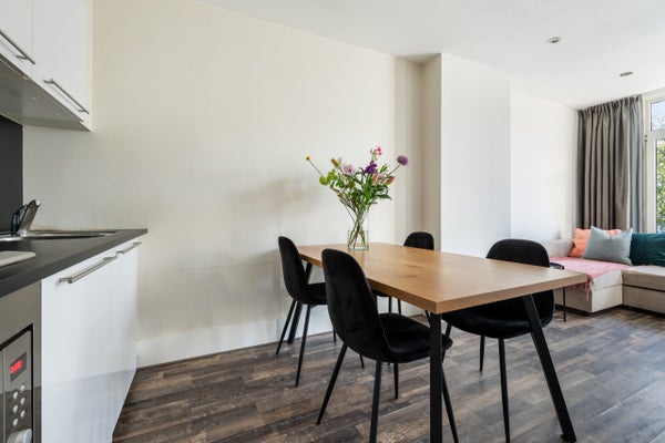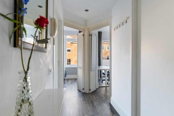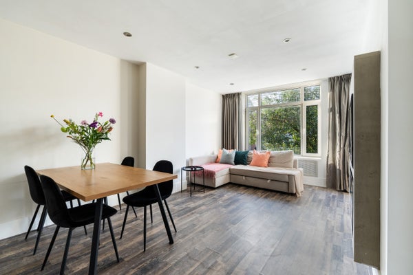 Dit instapklare 3-kamer appartement van 52 m2 is gelegen in de wijk Rubroek en biedt twee balkons op het westen en oosten. De lichte woonkamer aan de achterzijde beschikt over grote raampartijen die voor veel natuurlijk licht zorgen. De open keuken, verbonden met de eetruimte, is voorzien van een 5-pits gasfornuis, magnetron, vaatwasser en koel-/vriescombinatie. De twee slaapkamers aan de voorzijde zijn multifunctioneel en één heeft een balkon op het oosten. De badkamer heeft een inloopdouche en wastafel. Daarnaast is er een berging van ca. 5 m2. Het appartement ligt in een rustige, groene buurt op loopafstand van het centrum van Rotterdam, met faciliteiten als de Markthal en sportfaciliteiten dichtbij. Verwarming en warm water zijn geregeld via de CV-ketel.