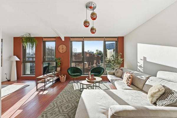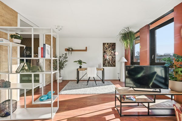 - De portiekflat heeft een woonoppervlakte van 95 m² en beschikt over 3 kamers, waarvan 2 slaapkamers;