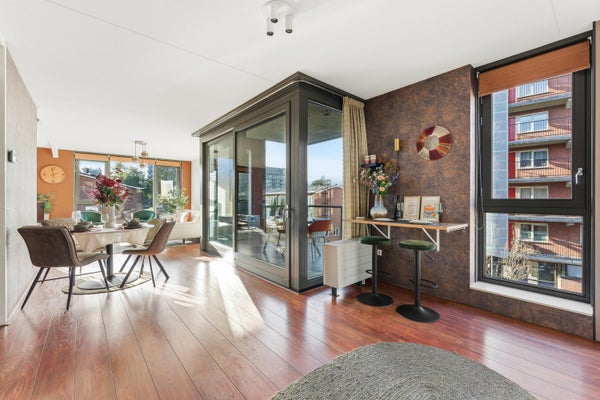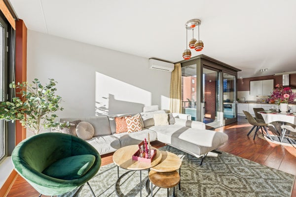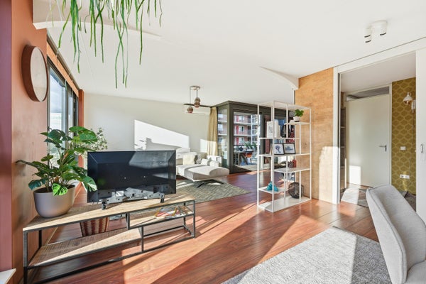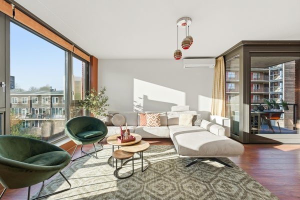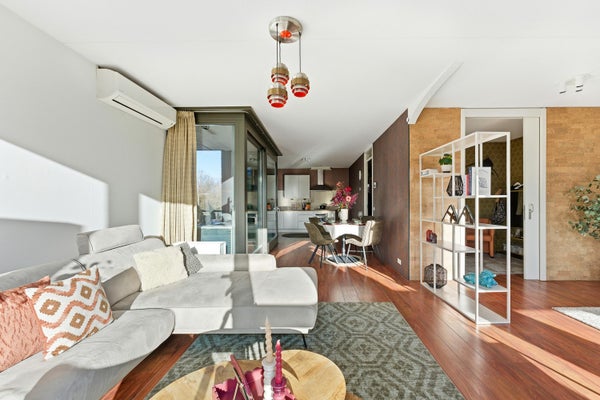 • Fantastisch lichte woonkamer, extra ruim doordat de zijkamer nu is bijgetrokken. Veel glas zorgt voor een open, frisse uitstraling.