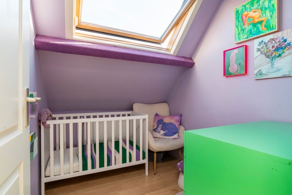 Slaapkamer (3.36 x 3.40) voor met velux-ramen en airco.
