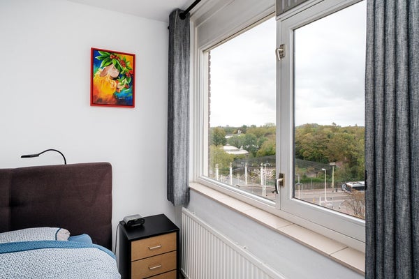 - De portiekflat heeft een woonoppervlakte van 91 m² en beschikt over 4 kamers, waarvan 3 slaapkamers;