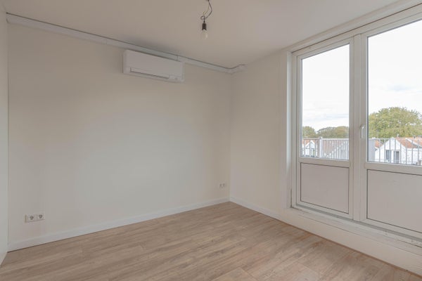 - De portiekflat heeft een woonoppervlakte van 91 m² en beschikt over 5 kamers, waarvan 3 slaapkamers;