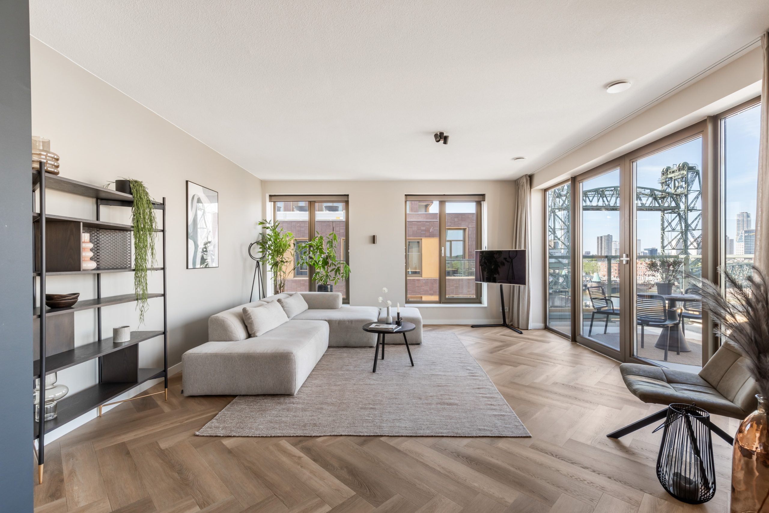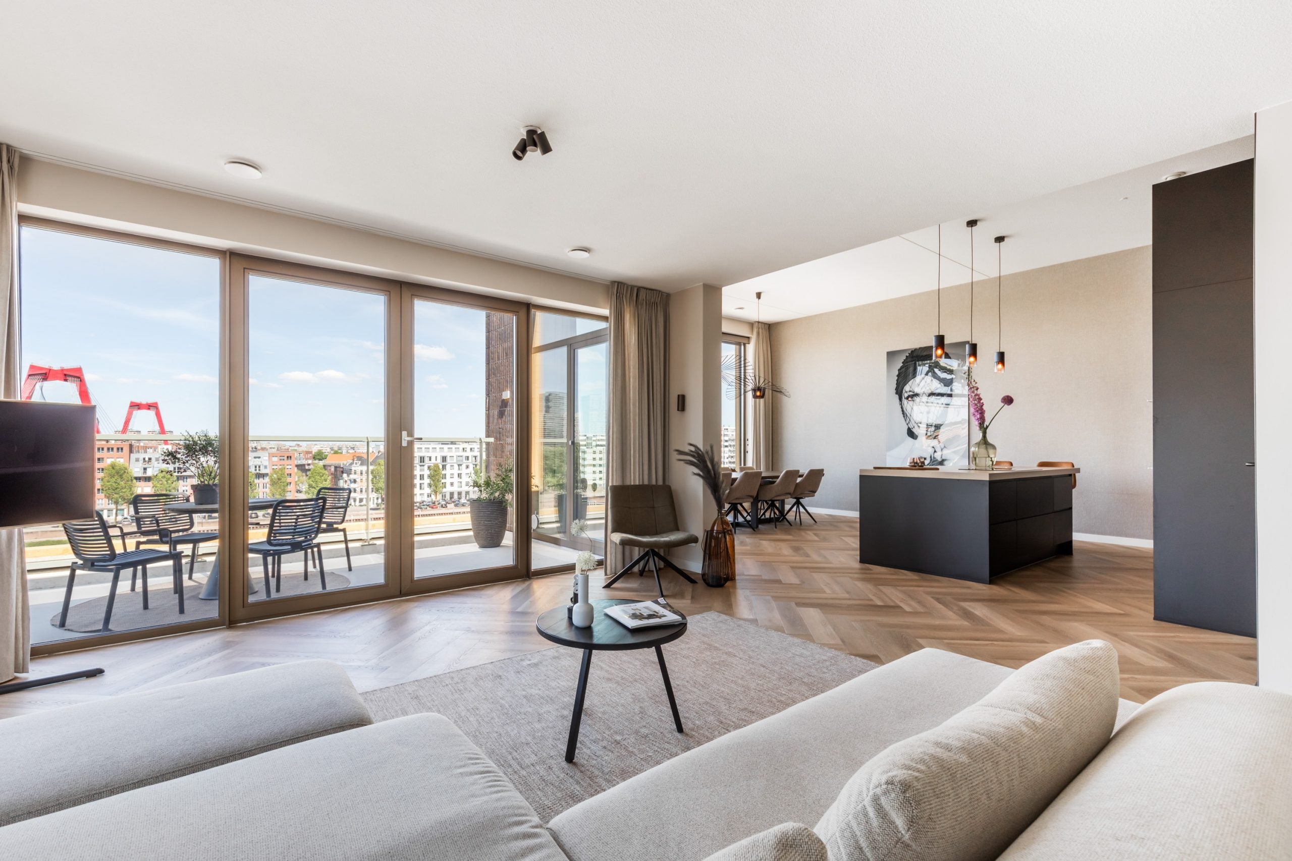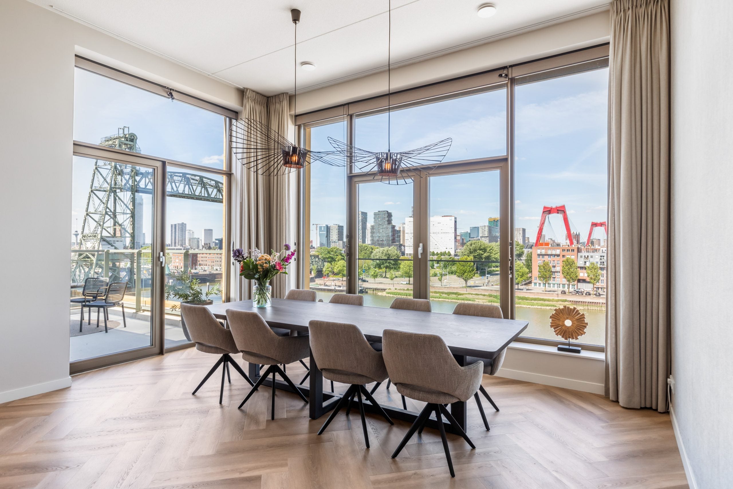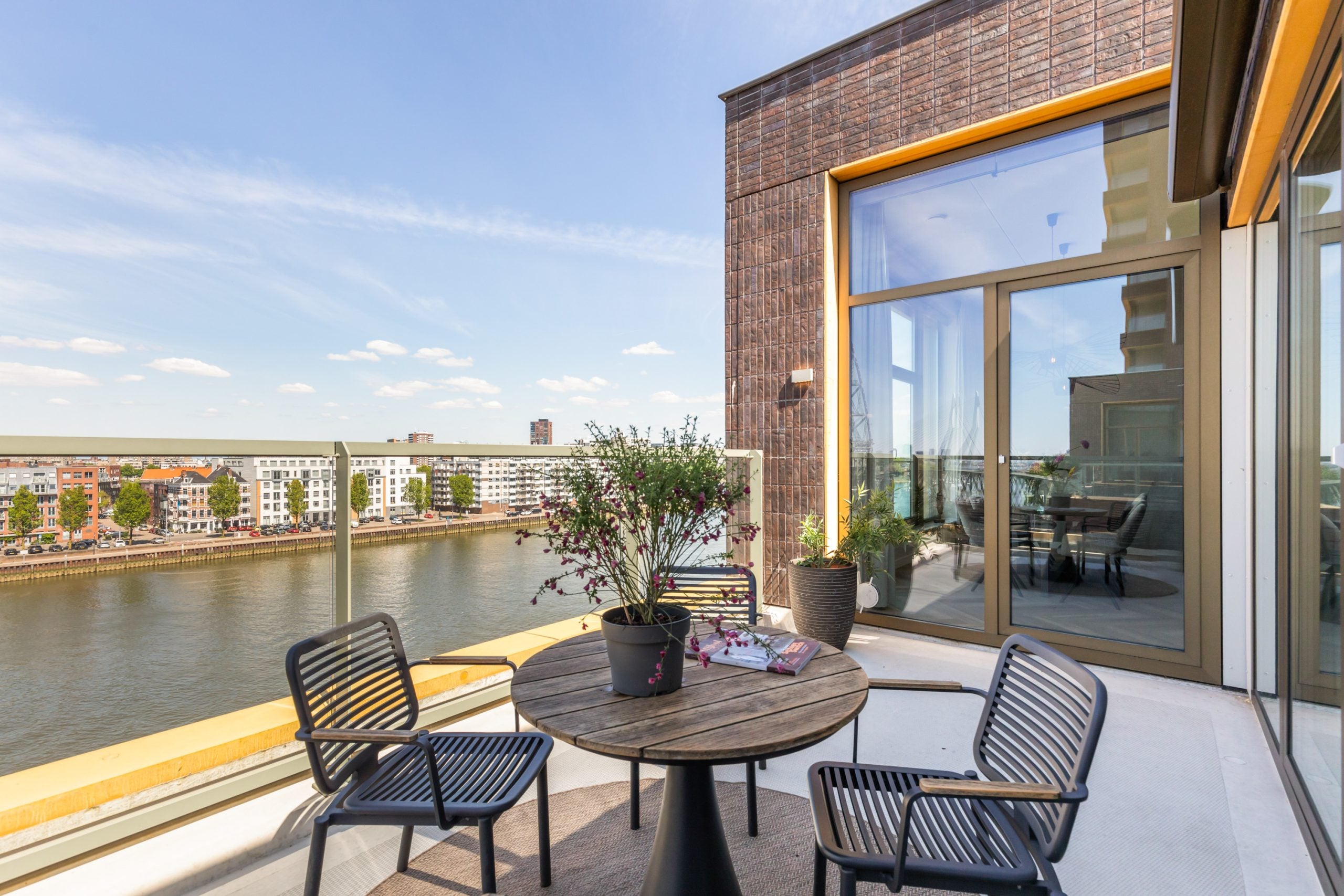 Dit fantastische 4/5-kamer penthouse van 141 m2 ligt op de Kop van Zuid en biedt een prachtig dakterras en balkon met uitzicht op de Maas. Gelegen op de bovenste verdieping, geniet je hier van de avonden met vrienden of familie in de bruisende sfeer van de stad. Het appartement beschikt over een eigen parkeerplaats in de afgesloten parkeergarage en een ruime berging. Met diverse voorzieningen op loopafstand, zoals het Hefpark, het Entrepotgebouw en de iconische Kop van Zuid, is de locatie ideaal. De royale entree leidt naar een lichte woon-/eetkamer met een open keuken. De master bedroom heeft een eigen badkamer, terwijl de andere slaapkamers multifunctioneel kunnen worden ingericht. Het dakterras van 76 m2 biedt een prachtig uitzicht en een fijne plek om te ontspannen.