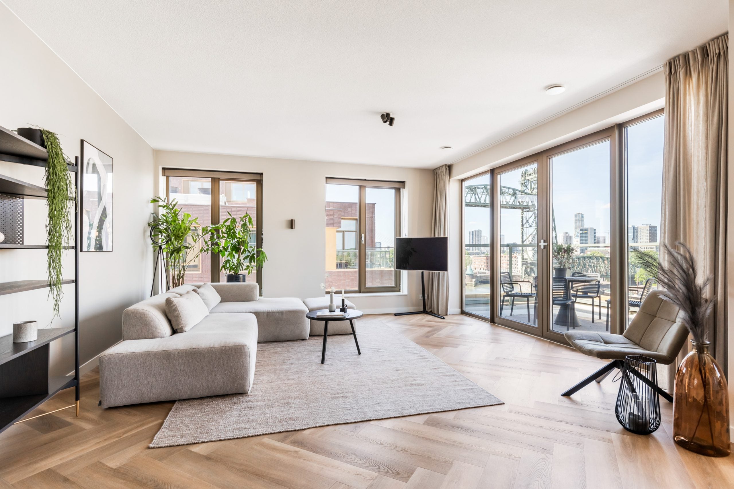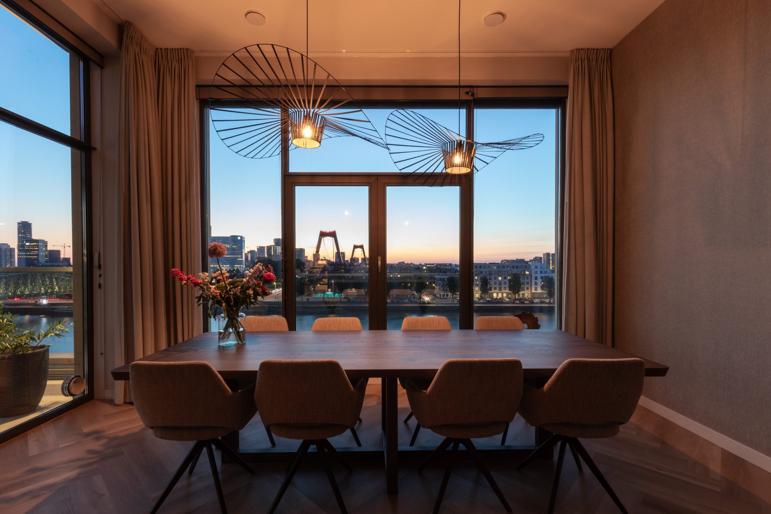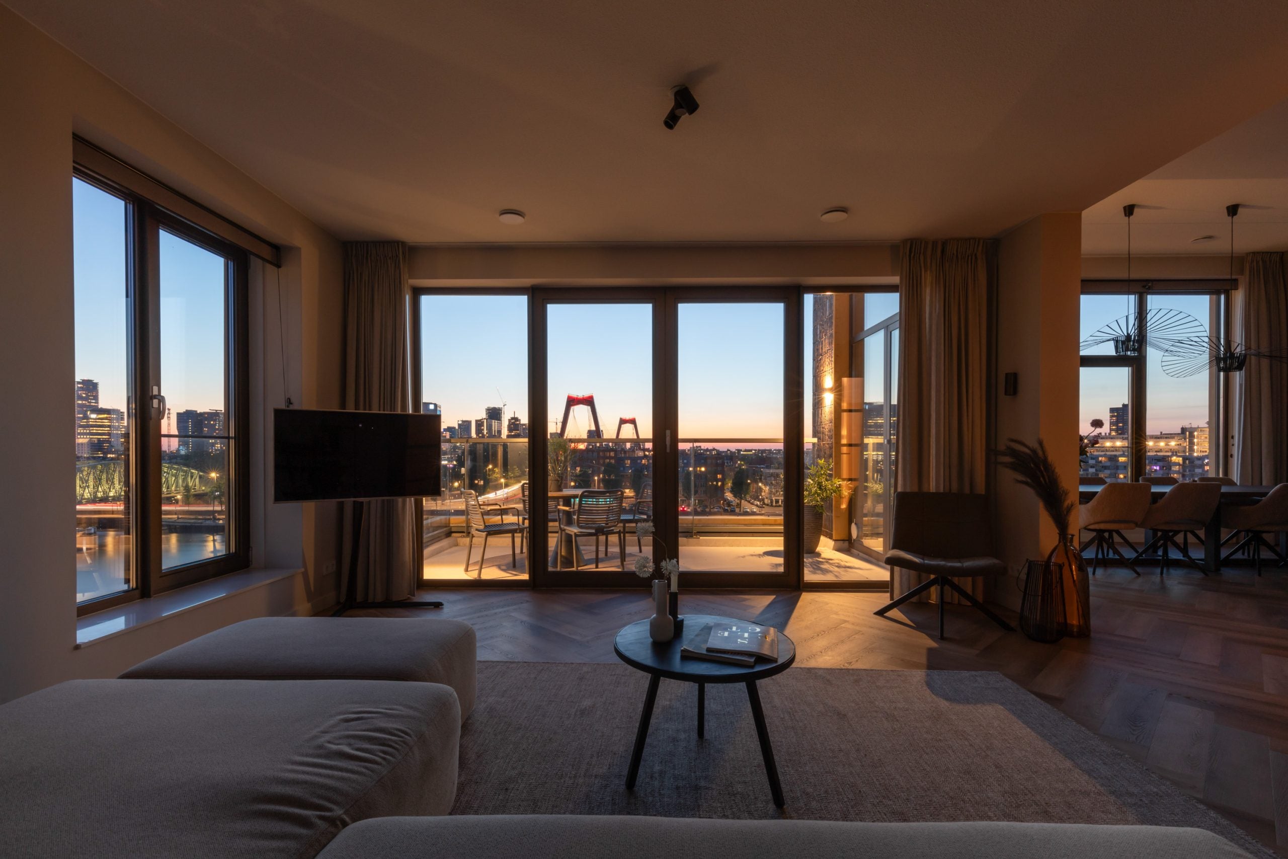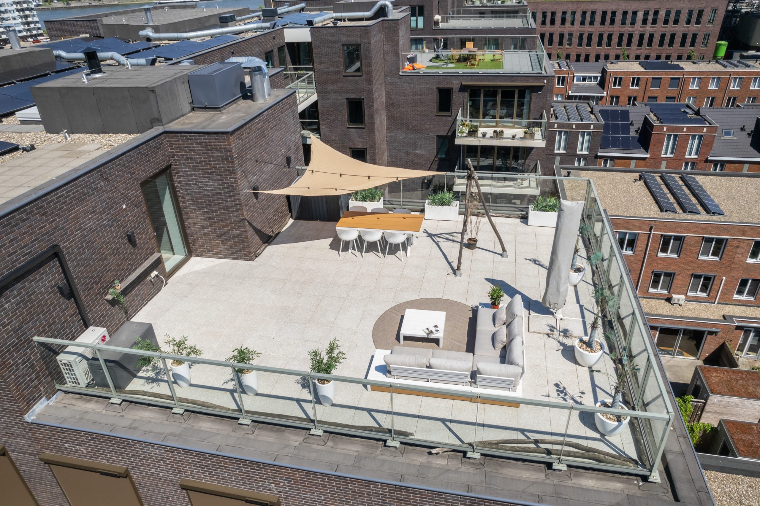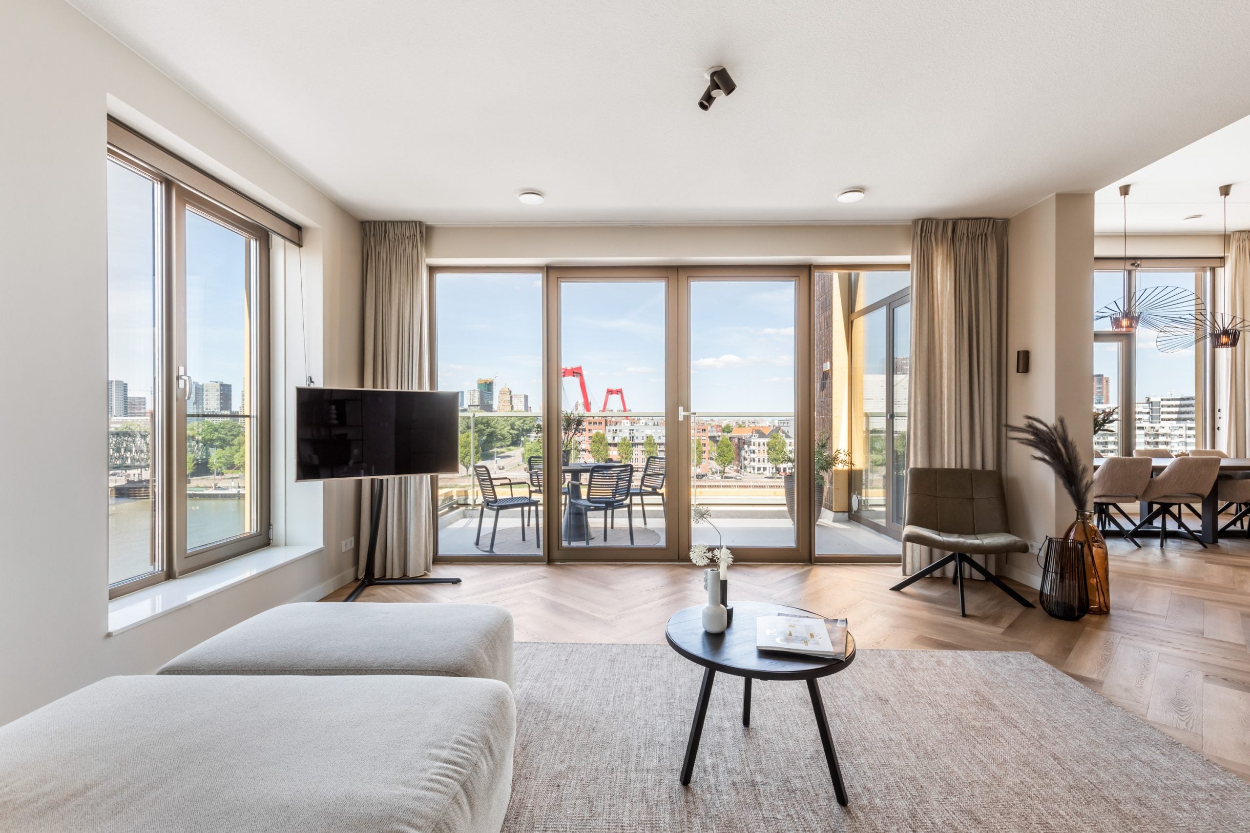 Dit fantastische 4/5-kamer penthouse van 141 m2 ligt op de Kop van Zuid en biedt een prachtig dakterras en balkon met uitzicht op de Maas. Gelegen op de bovenste verdieping, geniet je hier van de avonden met vrienden of familie in de bruisende sfeer van de stad. Het appartement beschikt over een eigen parkeerplaats in de afgesloten parkeergarage en een ruime berging. Met diverse voorzieningen op loopafstand, zoals het Hefpark, het Entrepotgebouw en de iconische Kop van Zuid, is de locatie ideaal. De royale entree leidt naar een lichte woon-/eetkamer met een open keuken. De master bedroom heeft een eigen badkamer, terwijl de andere slaapkamers multifunctioneel kunnen worden ingericht. Het dakterras van 76 m2 biedt een prachtig uitzicht en een fijne plek om te ontspannen.