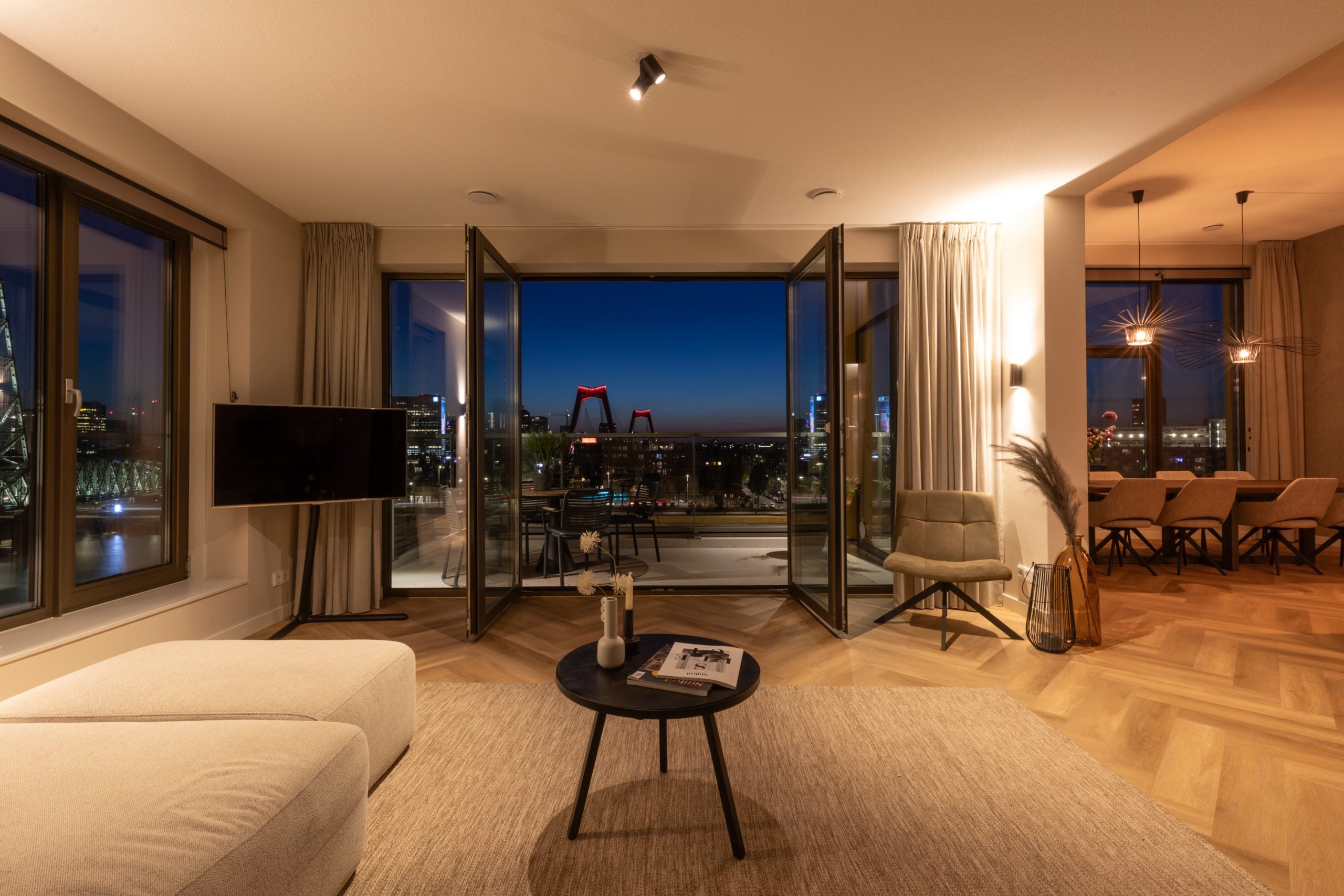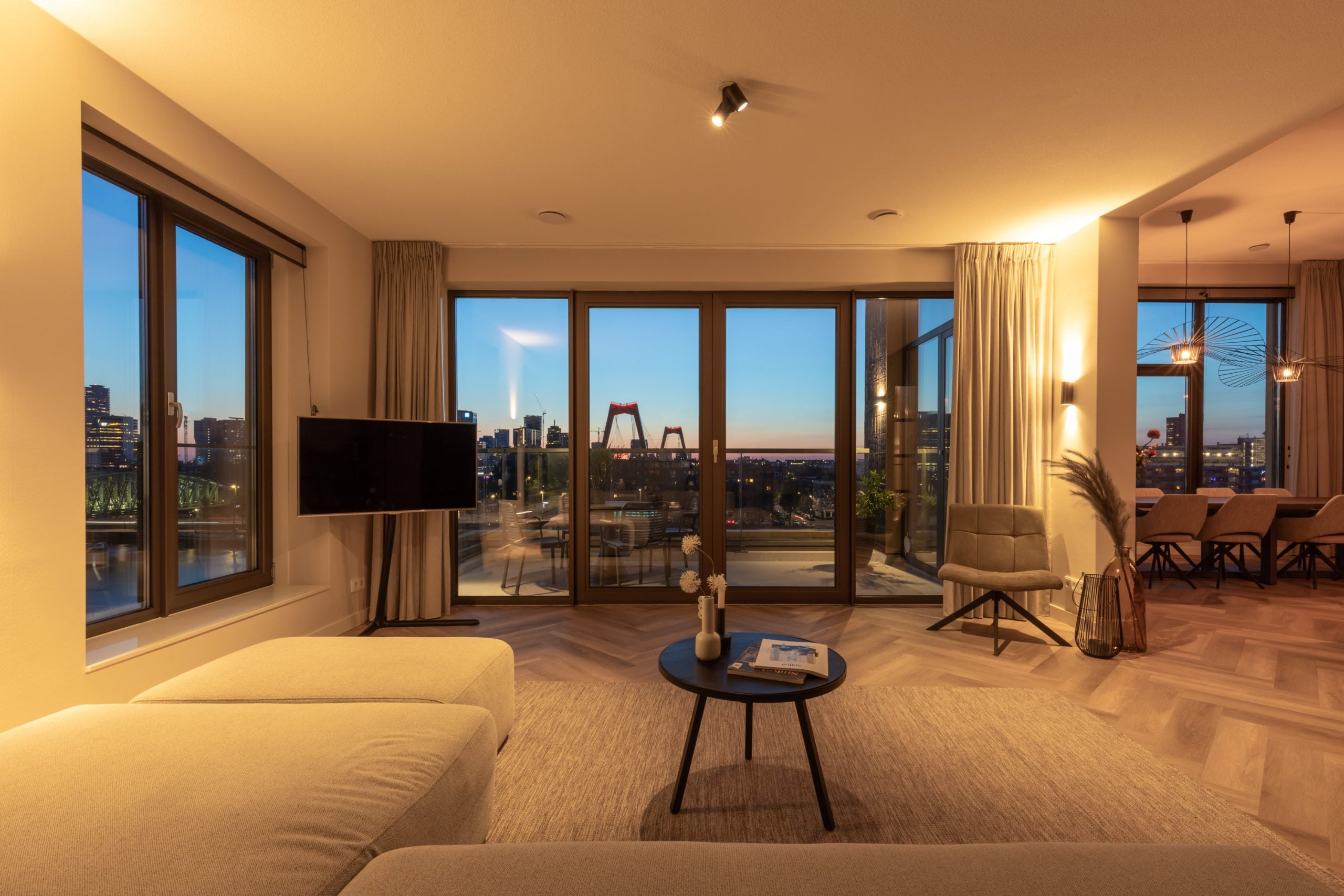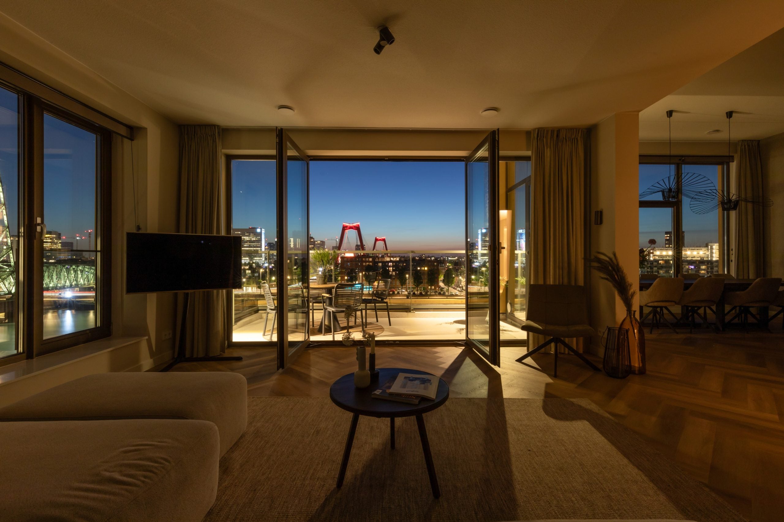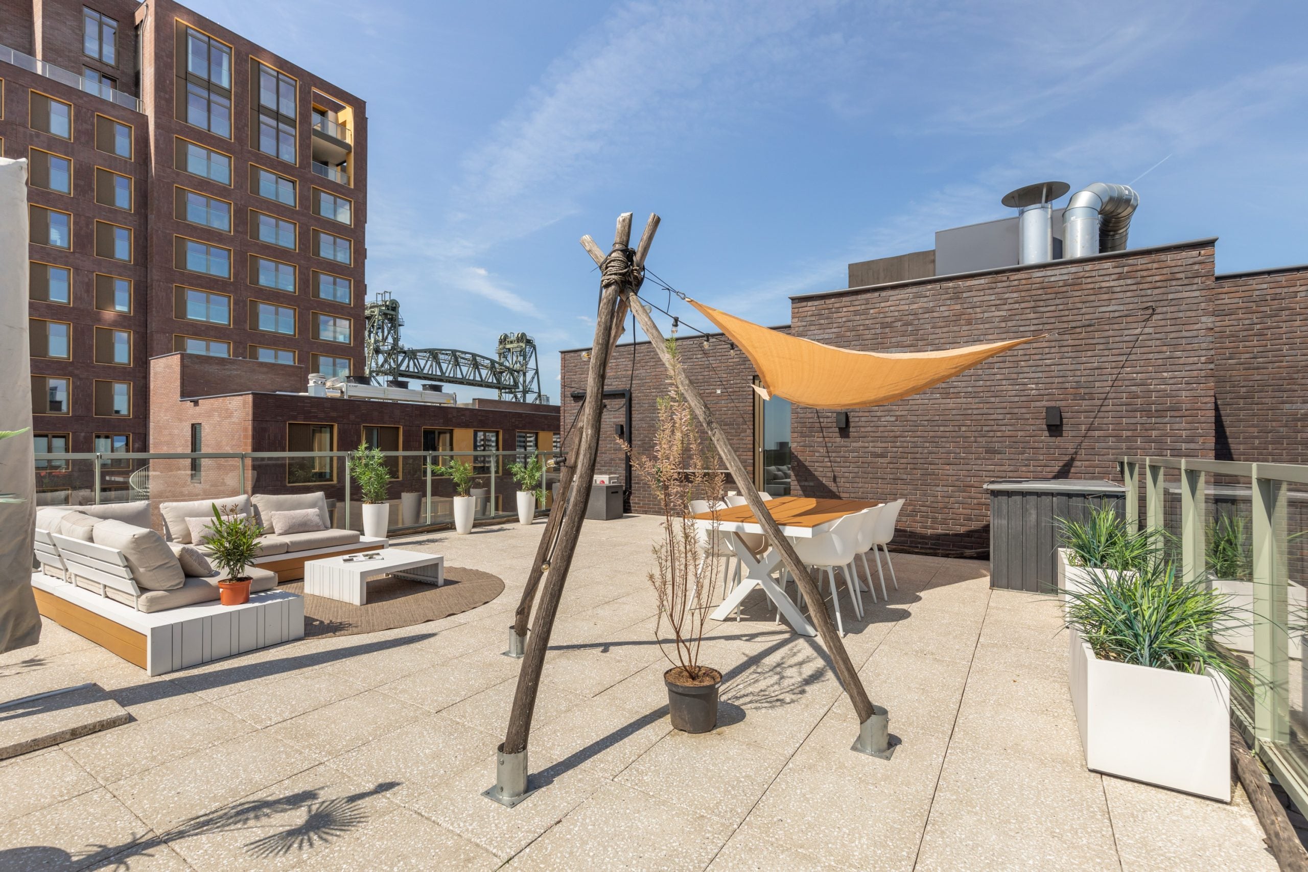 Dit fantastische 4/5-kamer penthouse van 141 m2 ligt op de Kop van Zuid en biedt een prachtig dakterras en balkon met uitzicht op de Maas. Gelegen op de bovenste verdieping, geniet je hier van de avonden met vrienden of familie in de bruisende sfeer van de stad. Het appartement beschikt over een eigen parkeerplaats in de afgesloten parkeergarage en een ruime berging. Met diverse voorzieningen op loopafstand, zoals het Hefpark, het Entrepotgebouw en de iconische Kop van Zuid, is de locatie ideaal. De royale entree leidt naar een lichte woon-/eetkamer met een open keuken. De master bedroom heeft een eigen badkamer, terwijl de andere slaapkamers multifunctioneel kunnen worden ingericht. Het dakterras van 76 m2 biedt een prachtig uitzicht en een fijne plek om te ontspannen.