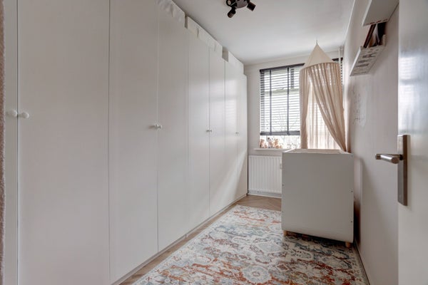 Deze woning beschikt over twee goed bemeten slaapkamers. De hoofdslaapkamer aan de achterzijde biedt directe toegang tot de badkamer, compleet met douche, wastafelmeubel en opstelplaats voor de boiler.
