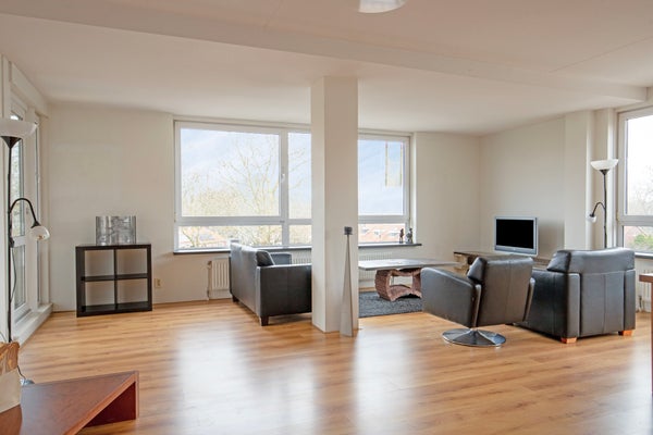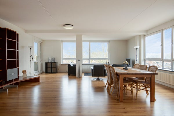 - De portiekflat heeft een woonoppervlakte van 121 m² en beschikt over 3 kamers, waarvan 2 slaapkamers;