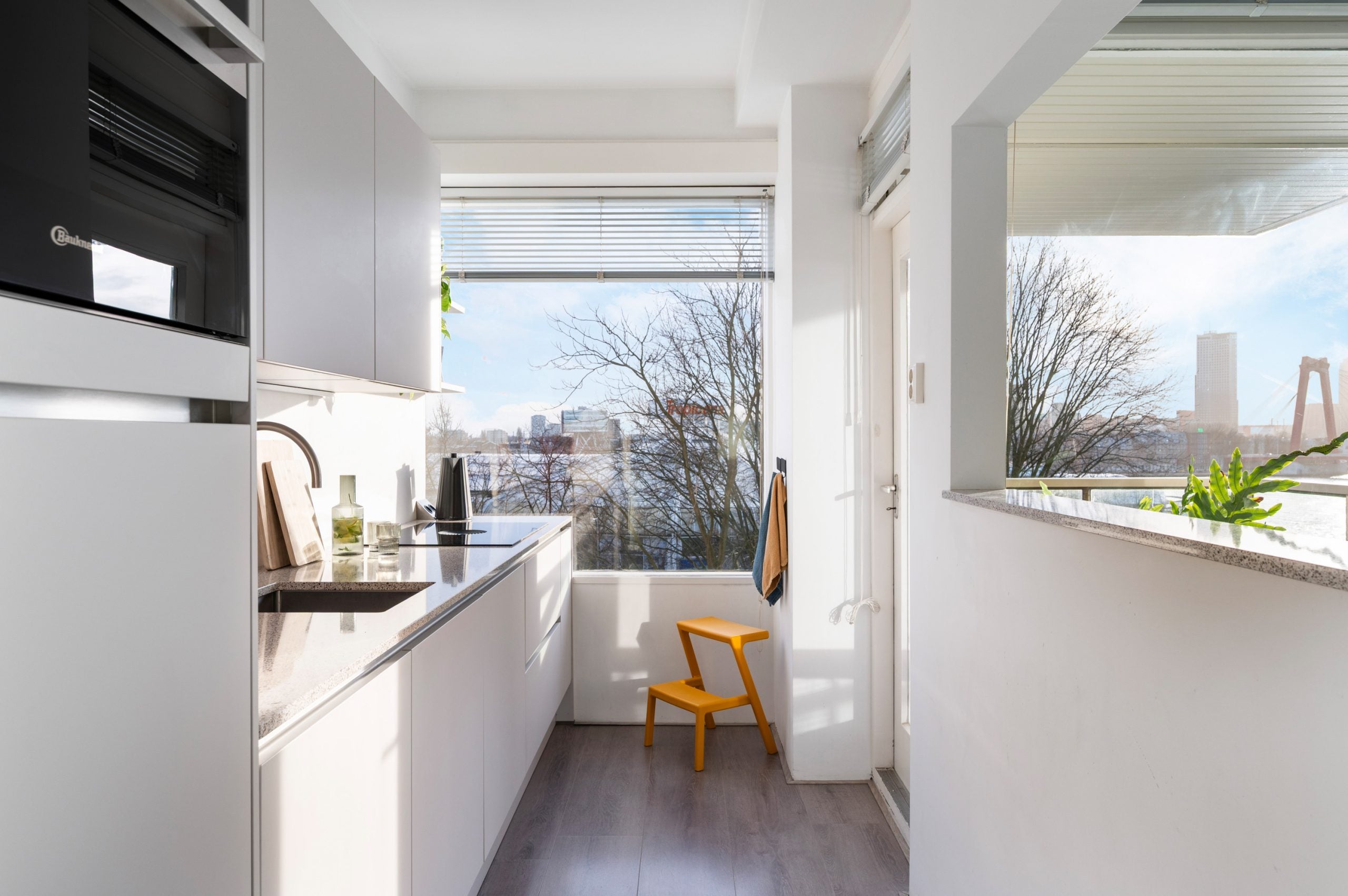 Dit fantastische 2-kamer bovenwoning van 57 m2 biedt een prachtig uitzicht over de Skyline van Rotterdam. De woning heeft een ruime en lichte woonkamer met toegang tot een balkon op het zonnige zuiden. De open keuken is voorzien van moderne inbouwapparatuur, zoals een elektrische kookplaat, vaatwasser, oven en koel-/vriescombinatie. De slaapkamer is ruim en biedt plek voor een kledingkast, terwijl de badkamer van alle gemakken is voorzien. Gelegen aan de ‘s-Lands Werf, in een levendige buurt met winkels en goede openbaarverbindingsmogelijkheden. De actieve VvE zorgt voor een goede service, waaronder wekelijkse schoonmaak en een onberispelijke gemeenschappelijke fietsenberging. Een ideale locatie voor wie stedelijk comfort combineert met een rustige leefomgeving.