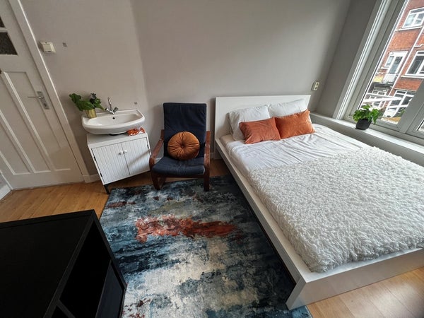 This lovely apartment at the Letlandsestraat 14B is located on the first floor and has an en-suite bedroom, a south-east facing balcony and private entrance.