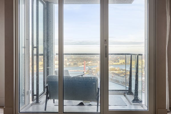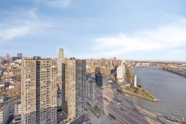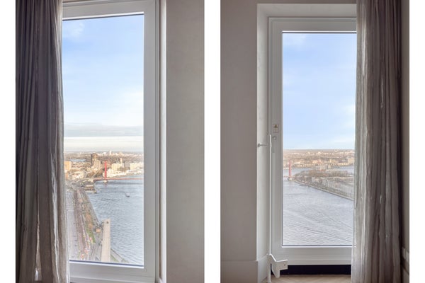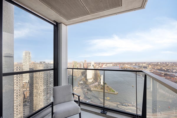 Ontdek dit luxe appartement aan de Houtlaan 319, gelegen op de 32e verdieping van de Zalmhaven toren, met een adembenemend uitzicht over Rotterdam. Via twee beveiligde ingangen betreedt u dit appartementencomplex met meerdere liften tot de 57ste verdieping en een 3-laagse parkeergarage. De ruime woonkamer, met grote raampartijen, biedt veel licht en toegang tot een oostelijk balkon. De moderne open keuken met schiereiland is compleet uitgerust met Siemens inbouwapparatuur. Dit appartement heeft twee slaapkamers, beide met uitzicht op de Maas, en een nette badkamer. Vloerverwarming en PVC vloeren verhogen het comfort. Er is een eigen parkeerplaats en berging, en bewoners hebben toegang tot een daktuin. Met uitstekende verbindingen naar het openbaar vervoer en nabijheid van winkels, restaurants en culturele voorzieningen is deze locatie perfect.