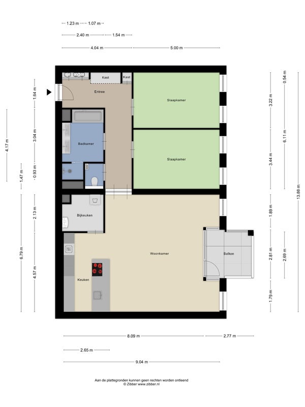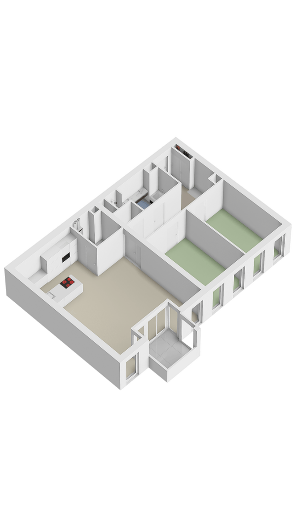 - De galerijflat heeft een woonoppervlakte van 122 m² en beschikt over 3 kamers, waarvan 2 slaapkamers;