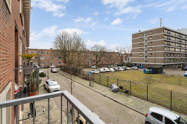 De woning beschikt over een royale woonkamer die veel natuurlijk licht binnenlaat. De twee ruime slaapkamers bieden voldoende ruimte, met de mogelijkheid om vanuit twee slaapkamers het balkon aan de achterzijde te betreden. Het balkon is gelegen op het noorden. De doelmatige keuken is voorzien van een keukenblok in een praktische hoekopstelling. Daarnaast beschikt de woning over een badkamer en aparte toiletruimte. Tot slot beschikt de woning over een eigen berging van 3.08 x 1.78 in de onderbouw, ideaal voor het opbergen van fietsen, gereedschap of andere spullen.