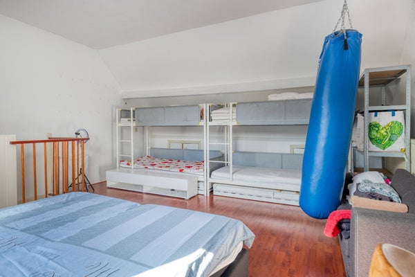 - De galerijflat heeft een woonoppervlakte van 120 m² en beschikt over 5 kamers, waarvan 4 slaapkamers;