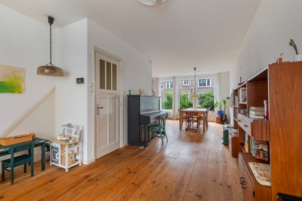 Deze karakteristieke 4-kamer dubbele benedenwoning van 110 m2 ligt in de wijk het Nieuwe Westen en heeft een achtertuin op het oosten. De lichte woonkamer en moderne keuken zorgen voor een prettige leefomgeving, met drie slaapkamers die multifunctioneel zijn in te richten. De master bedroom, mooi gelegen aan de achterzijde, biedt toegang tot de fraai aangelegde achtertuin. De badkamer is voorzien van een douche, ligbad, toilet en wastafel. Op de eerste verdieping bevindt zich een ruime woon-/eetkamer van 13 meter lang, met grote raampartijen die veel natuurlijk licht binnenlaten. De keuken is uitgerust met moderne inbouwapparatuur. Dit huis, gebouwd in 1912, heeft energielabel C, dubbel glas, en een CV-ketel uit 2023.