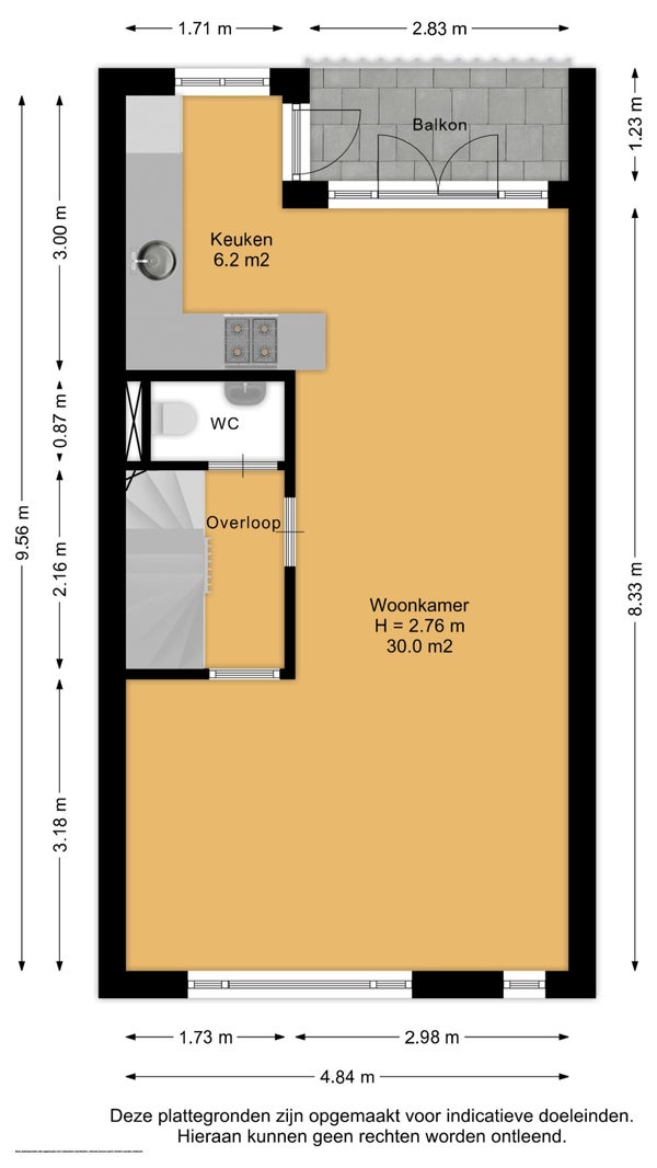 - De bovenwoning heeft een woonoppervlakte van 102 m² en beschikt over 4 kamers, waarvan 3 slaapkamers;