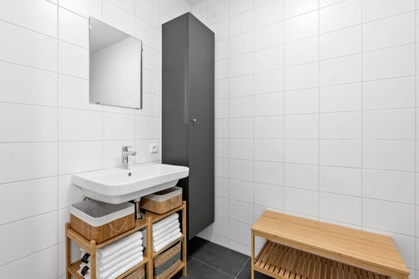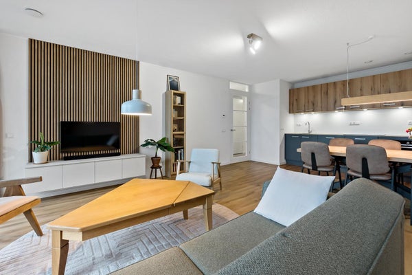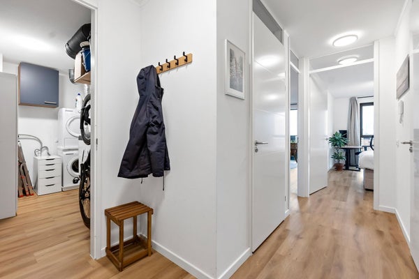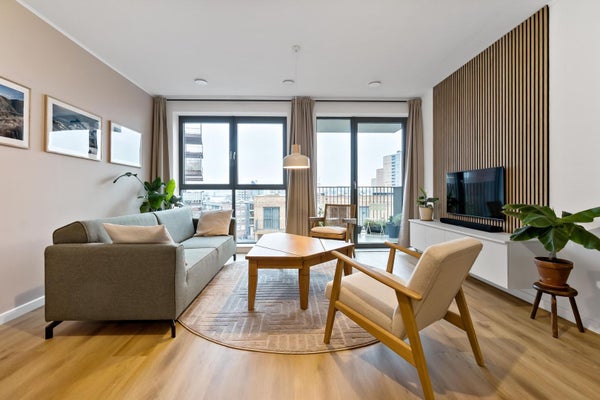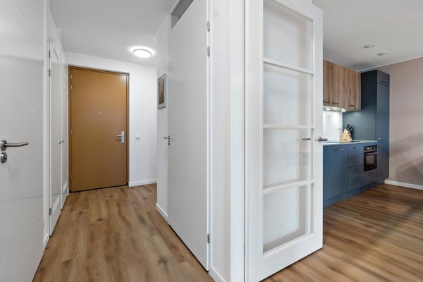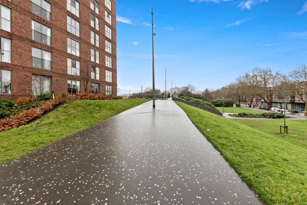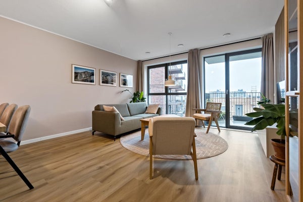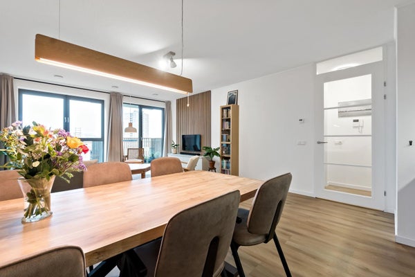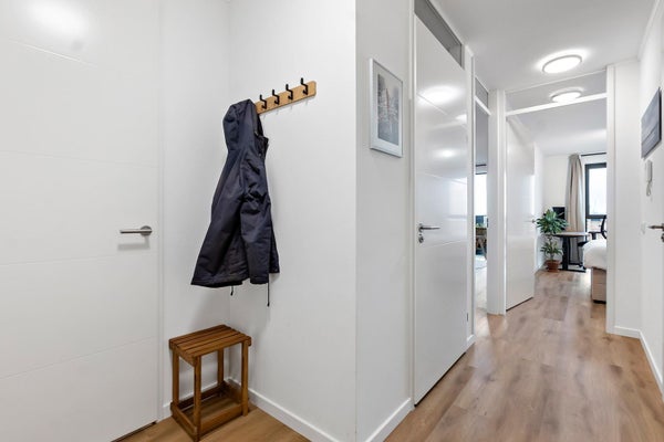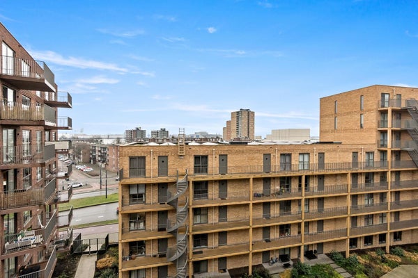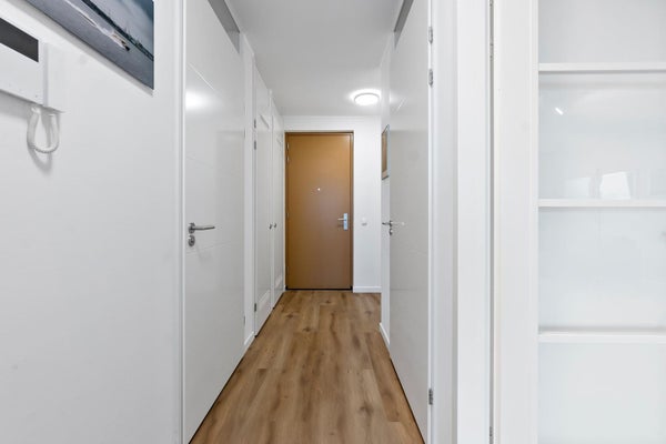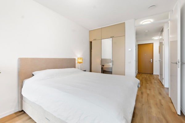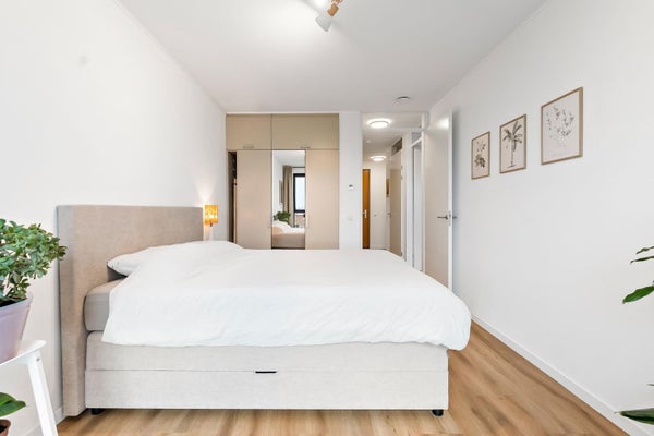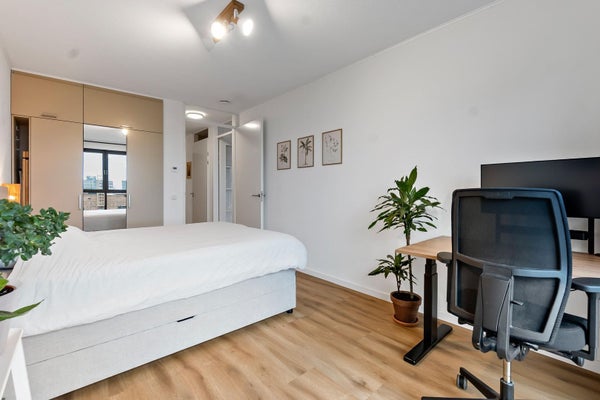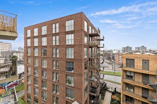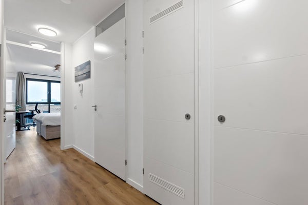 Deze moderne woning, gelegen op de 5e verdieping, biedt een instapklare omgeving in een centraal gelegen appartementencomplex dat in 2023 is gebouwd. Het heeft een uitstekende indeling en een energielabel A+++. De woning is hoogwaardig afgewerkt en beschikt over vloerverwarming en vloerkoeling, met een fraaie PVC-vloer. Op de begane grond vind je de gemeenschappelijke entree met videofoon en liften. Via de hal kom je bij een ruime opslag en het toilet. Grote gevelkozijnen zorgen voor lichtinval in de woonkamer, die toegang biedt tot een balkon op het zuidwesten met prachtig uitzicht. De open keuken is van alle gemakken voorzien. De badkamer heeft een inloopdouche en een maatwerk wastafel. De slaapkamer biedt ruimte voor een bed en werkplek. Daarnaast is er een gezamenlijke fietsenberging en bedraagt de VvE-bijdrage €126 per maand.