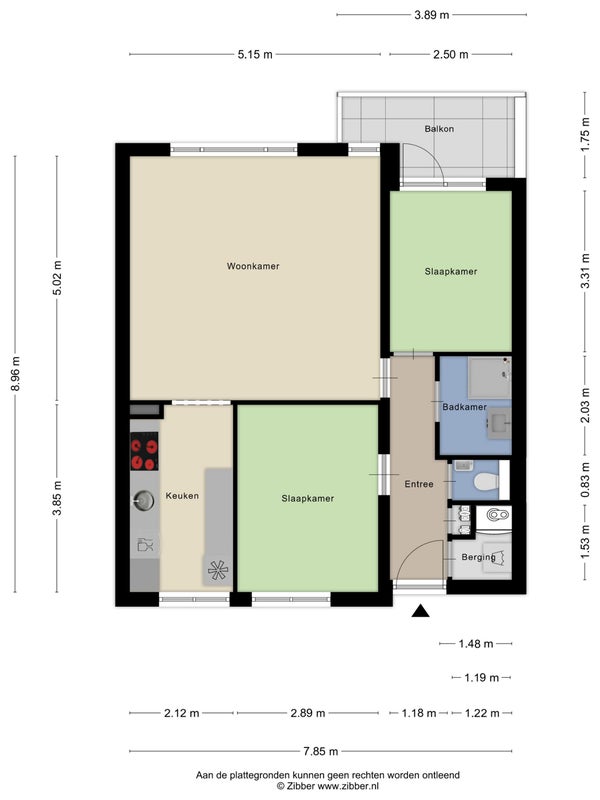 - De galerijflat heeft een woonoppervlakte van 68 m² en beschikt over 3 kamers, waarvan 2 slaapkamers;