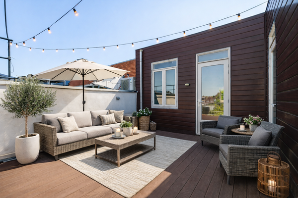 - Dakterras met voldoende ruimte voor een lounge- of eethoek en uitzicht over de groene binnentuinen – ideaal voor lange zomeravonden