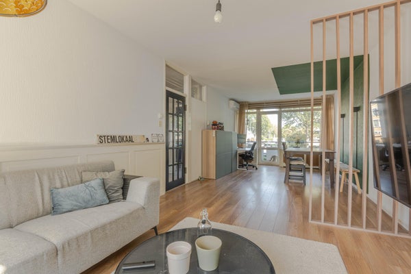 - De benedenwoning heeft een woonoppervlakte van 53 m² en beschikt over 2 kamers, waarvan 1 slaapkamer;