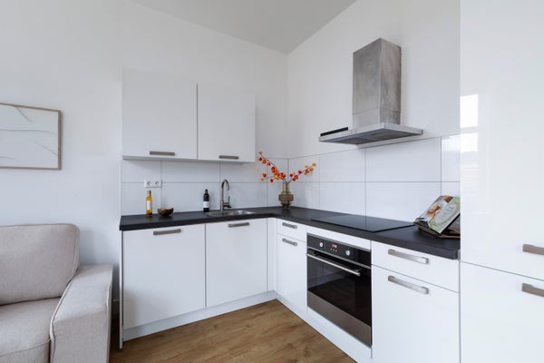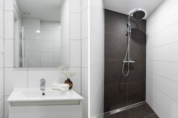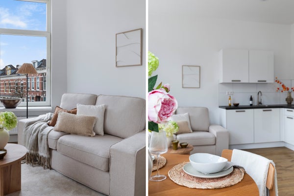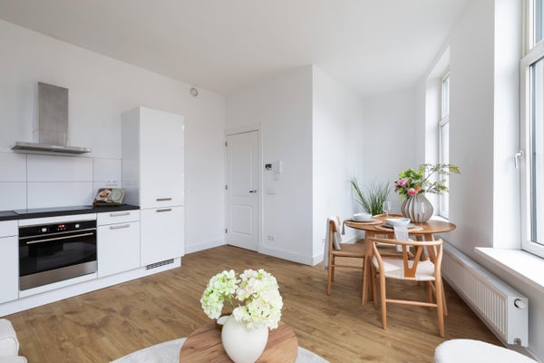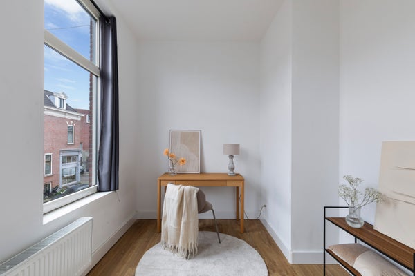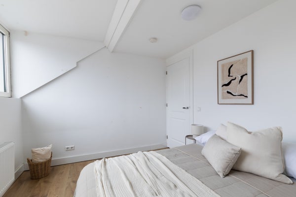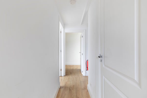 Dit sfeervolle, royale dubbel bovenhuis is gelegen op de hoek van een aantrekkelijk pand uit 1897, dat rond 2020 gerenoveerd is. De lichte woonkamer op de woonverdieping heeft een open keuken aan de voorzijde, uitgerust met een modern L-vormig blok en inbouwapparatuur, zoals een inductiekookplaat en vaatwasser. Naast een werk-/slaapkamer zijn er een ruime hal, een modern toilet en twee badkamers met inloopdouches. Op de bovenverdieping bevinden zich nog drie slaapkamers, een tweede toilet en een praktische wasruimte.