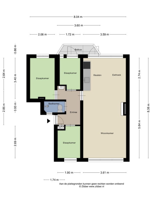 - De galerijflat heeft een woonoppervlakte van 57 m² en beschikt over 4 kamers, waarvan 3 slaapkamers;