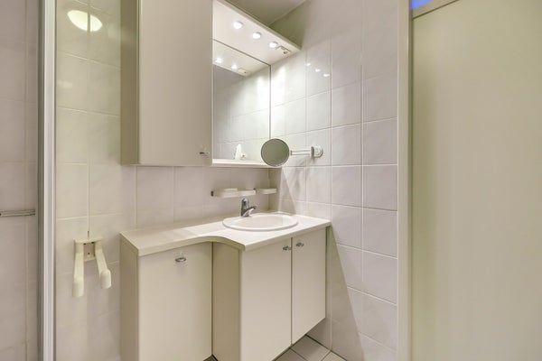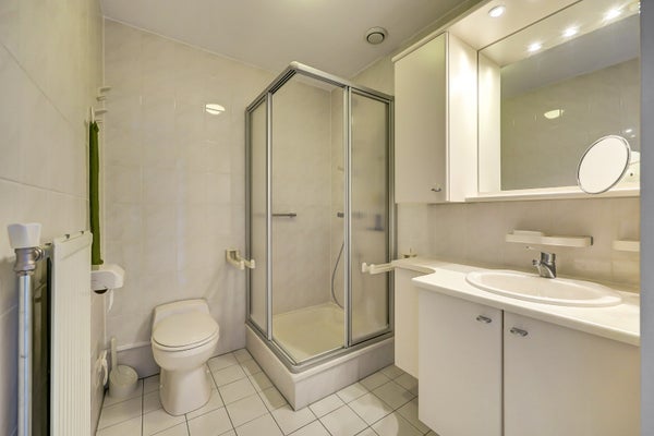 De tweede badkamer beschikt over een ligbad met handdouche, wastafel met spiegel, handdoekenkast én een aansluiting voor de wasmachine.