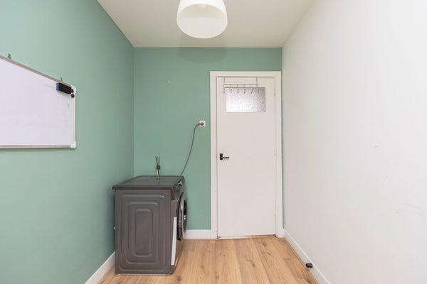 De tweede kamer wordt momenteel gebruikt als waskamer (de droger is hier gesitueerd), maar is dankzij de fijne afmetingen uitstekend geschikt als kinder-, werk- of logeerkamer.