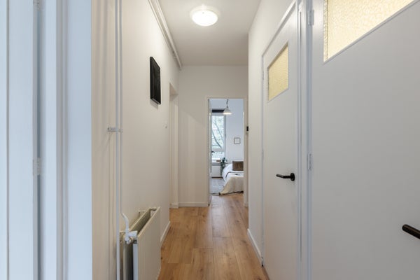 - De portiekflat heeft een woonoppervlakte van 65 m² en beschikt over 3 kamers, waarvan 2 slaapkamers;
