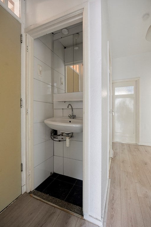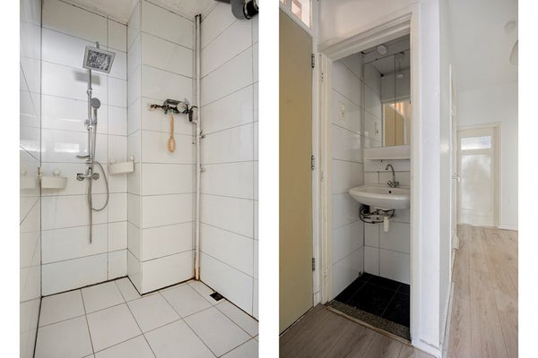 Er zijn in totaal drie slaapkamers, deze zijn gelegen aan de achterzijde van de woning. De grootste slaapkamer heeft een balkon op het Westen, met uitzicht over de gezamenlijke stadstuin. De inpandig gelegen badkamer voorzien van een inloopdouche, het toilet bevindt zich separaat.