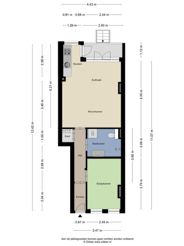- De galerijflat heeft een woonoppervlakte van 46 m² en beschikt over 2 kamers, waarvan 1 slaapkamer;
