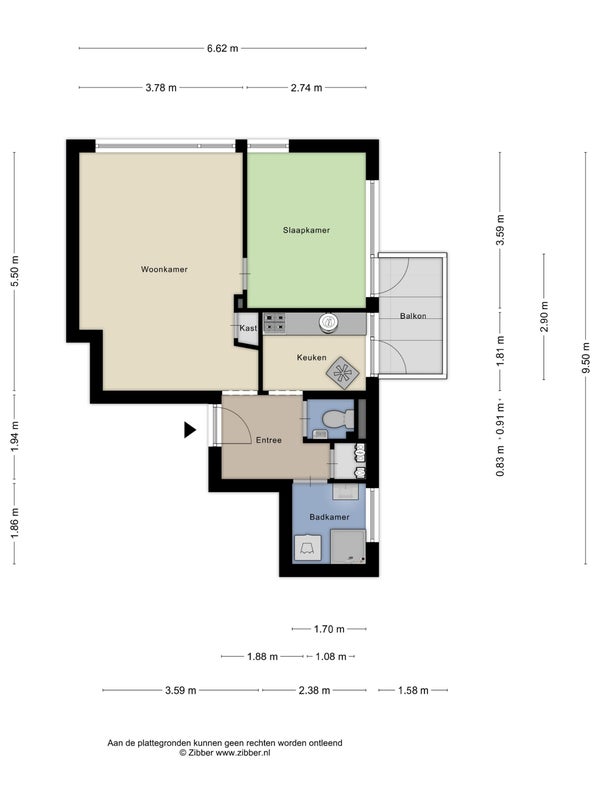 - De galerijflat heeft een woonoppervlakte van 46 m² en beschikt over 2 kamers, waarvan 1 slaapkamer;