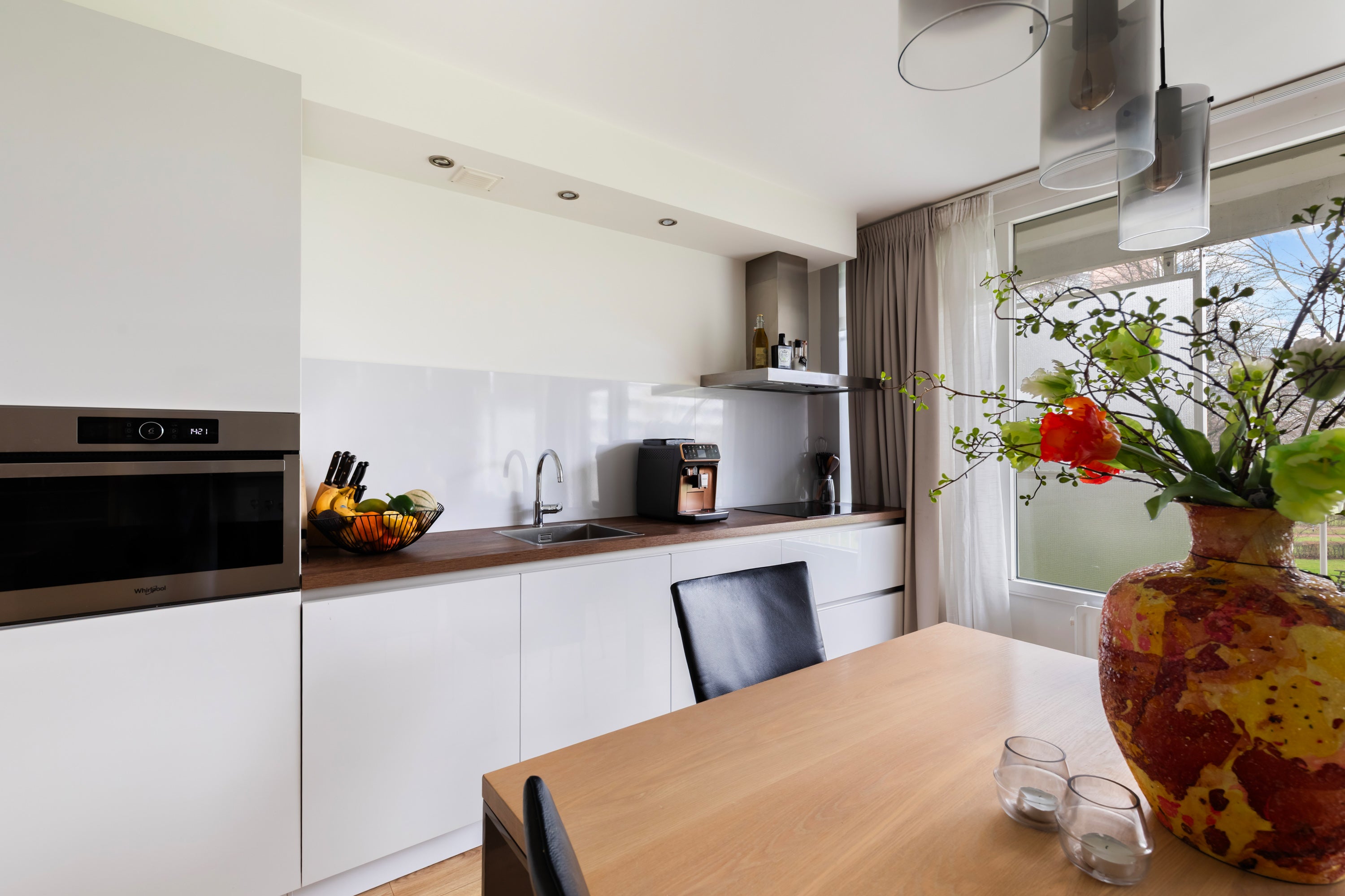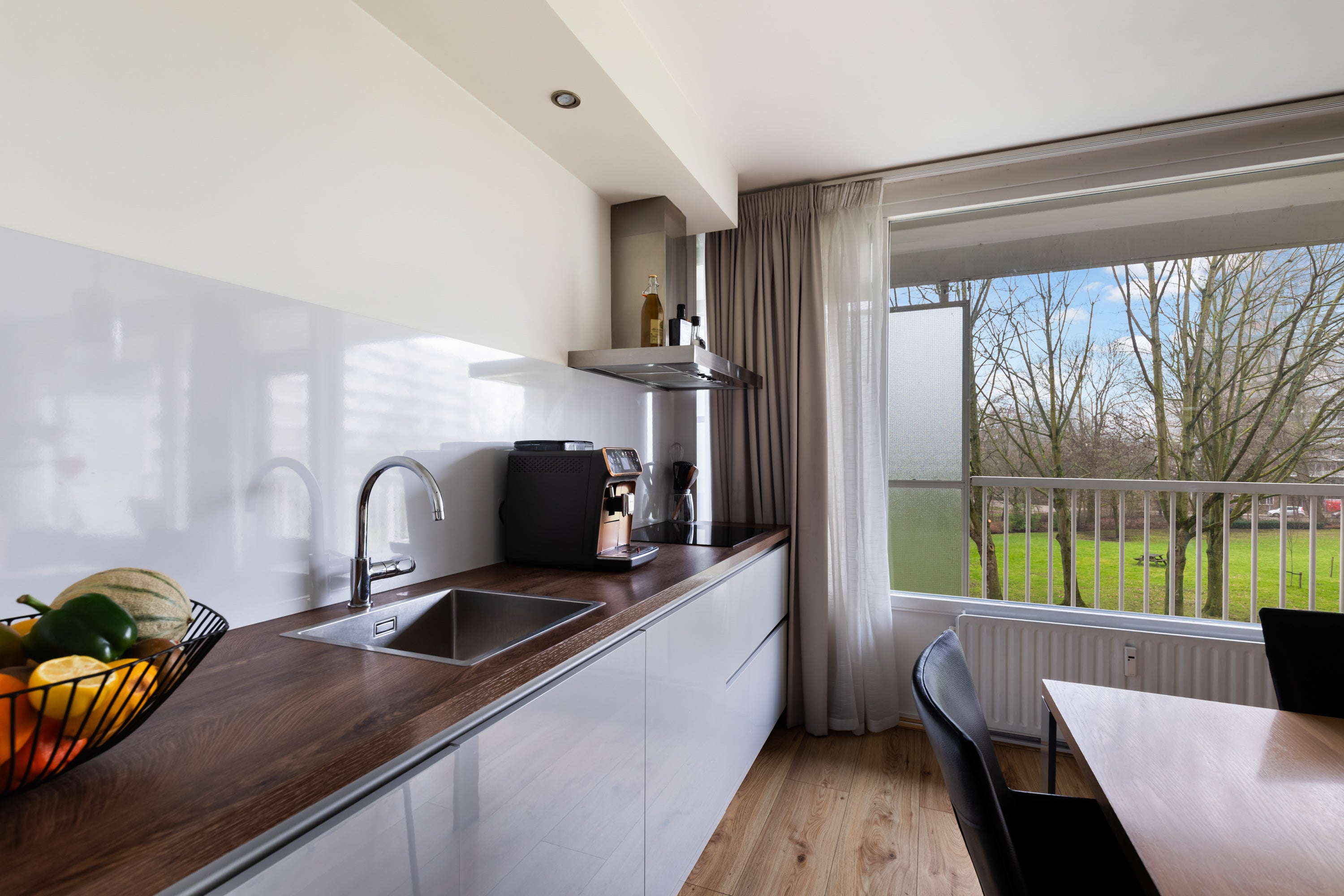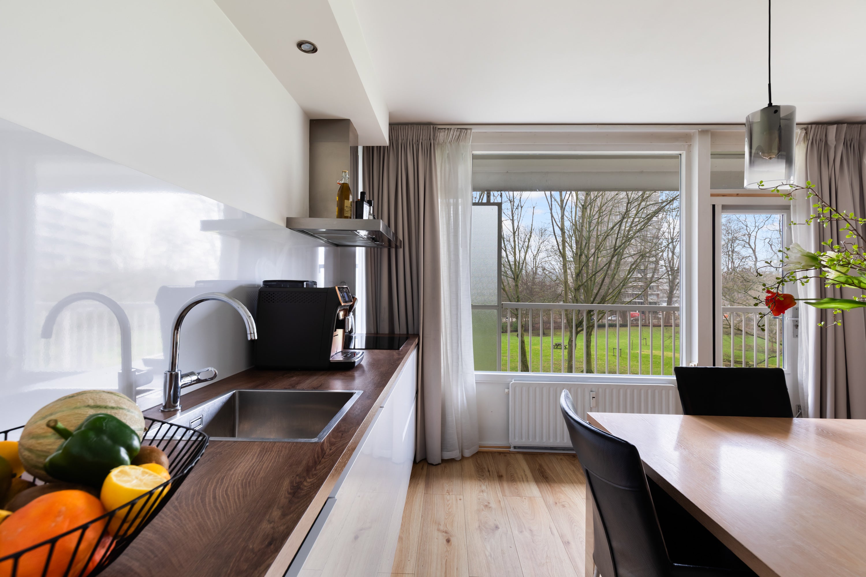 Dit appartement ligt op 5 minuten lopen van het metrostation en winkelcentrum Hesseplaats, waar diverse winkels en horecagelegenheden te vinden zijn. De entree van het gebouw is verzorgd en heeft een videofooninstallatie en twee liften. Bij binnenkomst in de hal is er toegang tot de ruime living van 40m2, met ramen over de volle breedte en uitzicht op de tuin. Dit appartement is in 2018 volledig verbouwd, waarbij de moderne keuken naar de woonkamer is verplaatst. De hoofdslaapkamer van 16m2 en een tweede slaapkamer van 8m2 bieden voldoende ruimte. De moderne badkamer heeft een inloopdouche en bijbehorend toilet. De woning is gasloos verwarmd en heeft HR+++ glas, met een actieve VvE van € 207,- per maand.
