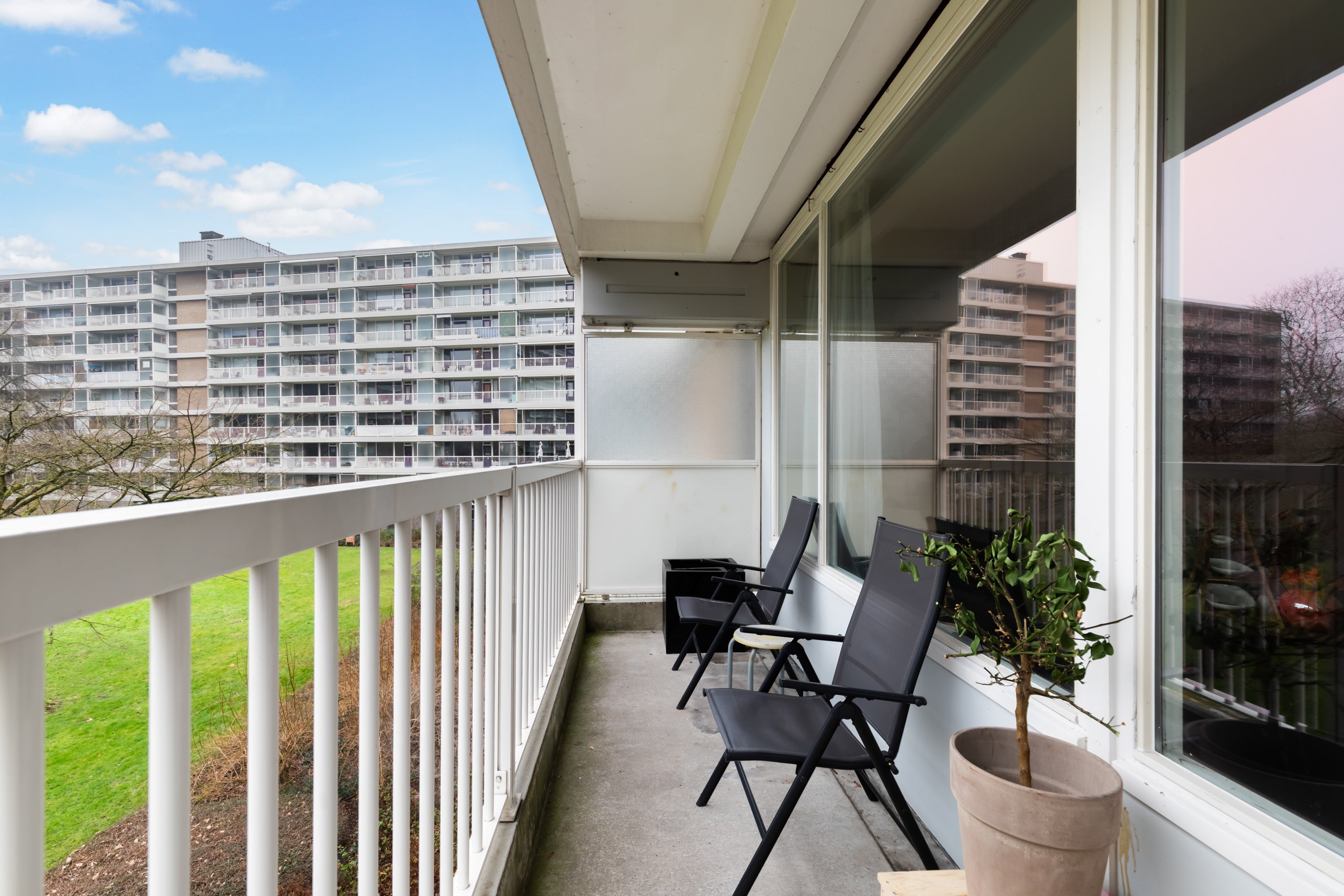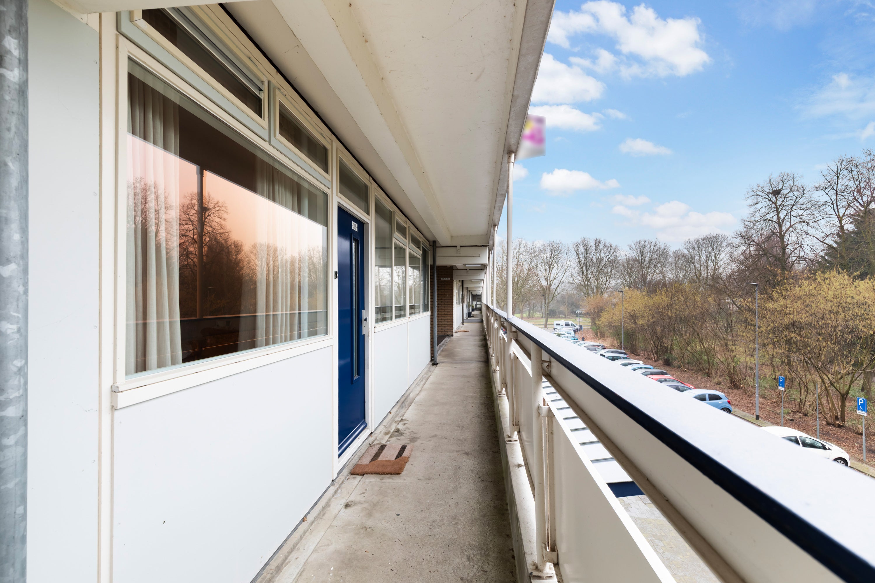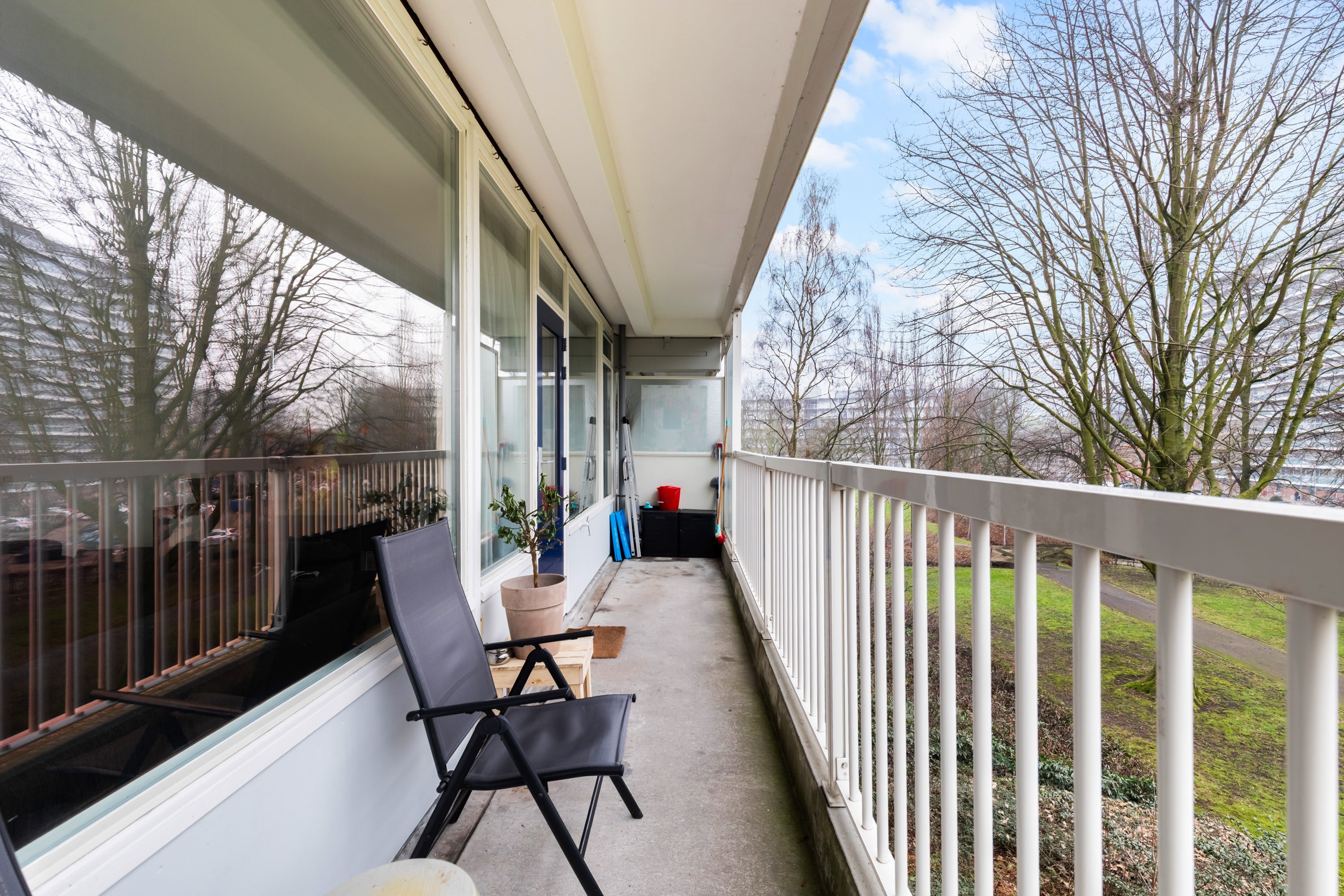 - De galerijflat heeft een woonoppervlakte van 84 m² en beschikt over 3 kamers, waarvan 2 slaapkamers;