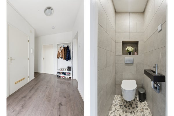 Het appartement beschikt over drie comfortabele slaapkamers, perfect voor een gezin, thuiswerkplek of logeerkamer. De badkamer is modern afgewerkt met wastafel en douche. Daarnaast is er een aparte kast/wasruimte – een aanpassing die het dagelijks leven nét wat makkelijker maakt.