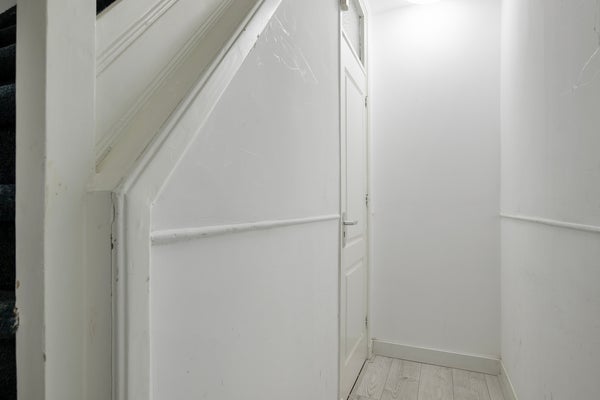 De royale woonkamer is licht en uitnodigend, de perfecte plek om te ontspannen, te borrelen met vrienden of rustig te genieten van uw vrije tijd. De open keuken in rechte opstelling is modern en compleet ingericht met een gaskookplaat, afzuigkap en vaatwasser. De laminaatvloer en strak gesausde wanden maken de ruimte direct eigentijds en sfeervol. Ter aanvulling kun u eventueel de trapopgang en de overloop gebruiken als extra opslag.