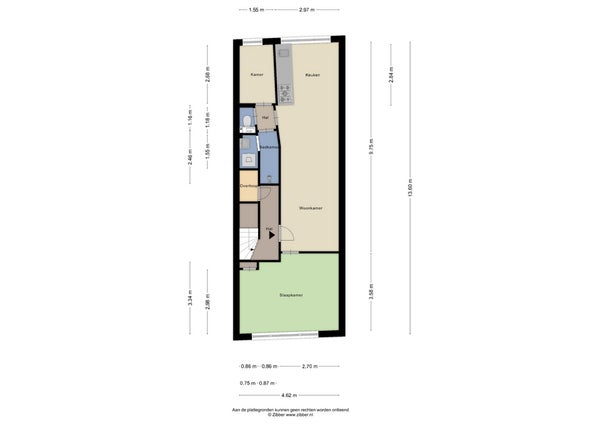 - Slaapkamer gelegen aan de achterzijde (ca. 1.55m x 2.68m);