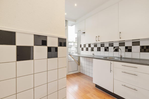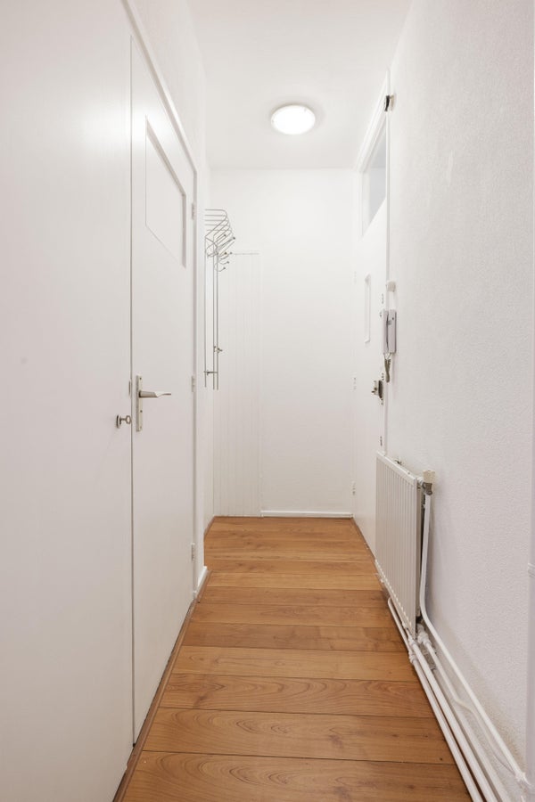 - De portiekflat heeft een woonoppervlakte van 58 m² en beschikt over 2 kamers, waarvan 1 slaapkamer;