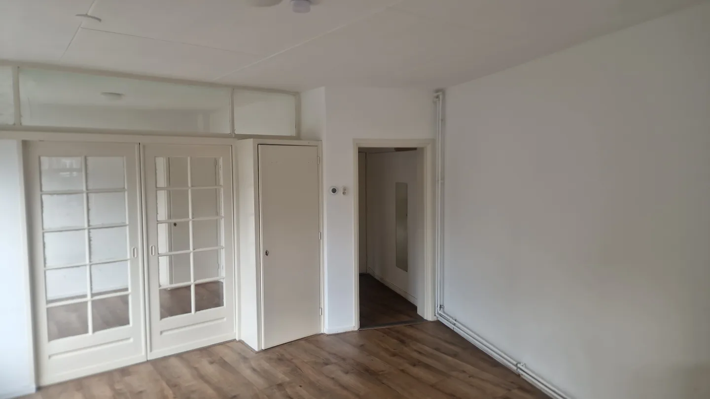Ook aan de achterzijde bevindt zich een ruime kamer met een grote raampartij, waardoor het een aangename, lichte ruimte is. Ideaal als slaapkamer, werkkamer of hobbyruimte.