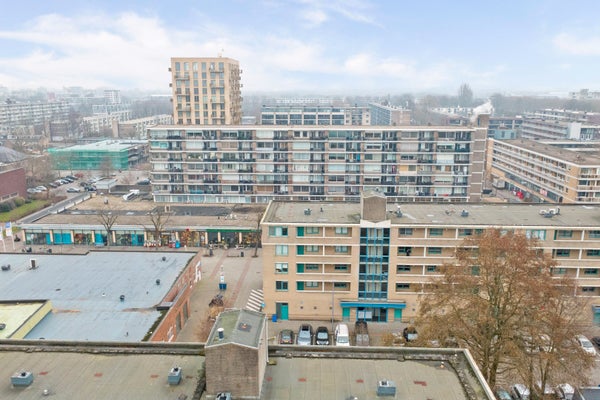 Het balkon is gelegen op het westen en biedt vaak tot in de late uren zon .Ook heeft u hier uitzicht op het winkelplein" het Lage Land" én uitzicht naar de skyline van Rotterdam.