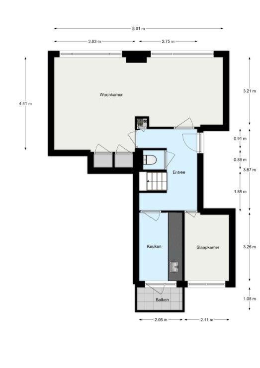 Via het afgesloten portiek bereik je de woning op de tweede verdieping. De ruime hal geeft toegang tot de woonkamer, keuken, een slaapkamer en het toilet. De lichte woonkamer van circa 28 m² ligt aan de voorzijde en profiteert van grote raampartijen. Aan de achterzijde bevindt zich de keuken (ca. 6 m²) met toegang tot een balkon op het oosten. Dit is een fijne plek voor je ochtendkoffie. Op deze verdieping vind je ook de eerste slaapkamer van circa 7 m².
