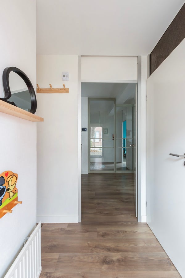 Verzorgde entree met meterkast, bergkast voorzien van C.V.-installatie, separaat hangend toilet met fonteintje.
