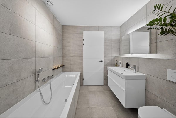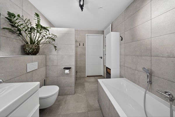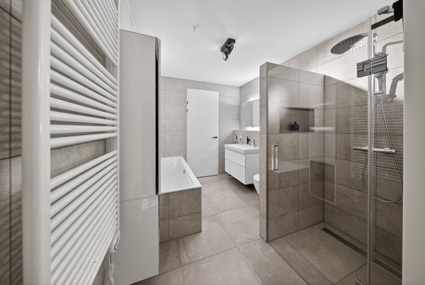 Het appartement beschikt over drie slaapkamers. Alle drie zijn voorzien van fraaie inbouwkasten en hebben toegang tot een van de twee balkons. De badkamer is modern en stijlvol, uitgerust met een inloopdouche met regenkop- en handdouche, ligbad, wastafelmeubel met dubbele kraan, tweede toilet en hoogwaardig tegelwerk. Verder is er een inpandige berging met opstelplaats voor wasmachine en droger, en extra bergruimte.