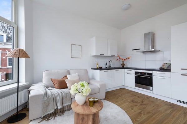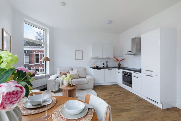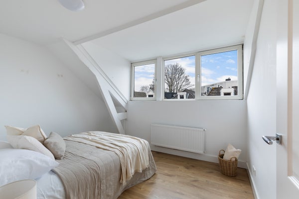 Dit heerlijke bovenhuis bevindt zich op de eerste en tweede verdieping van een sfeervol pand uit 1897 en is rond 2020 gerenoveerd. Op de woonverdieping tref je een heerlijk lichte woonkamer met open keuken aan de voorzijde met veel licht inval door de hoekligging. De keuken is voorzien van een modern wit L vormig blok met inbouwapparatuur oa inductiekookplaat, koelkast, vriezer en een vaatwasser. Een werk-/slaapkamers aan de zijkant. Tussenin bevindt zich een ruime hal met toegang tot een modern toilet en de twee badkamers. De twee moderne badkamers zijn voorzien van een wastafelmeubel en een inloopdouche