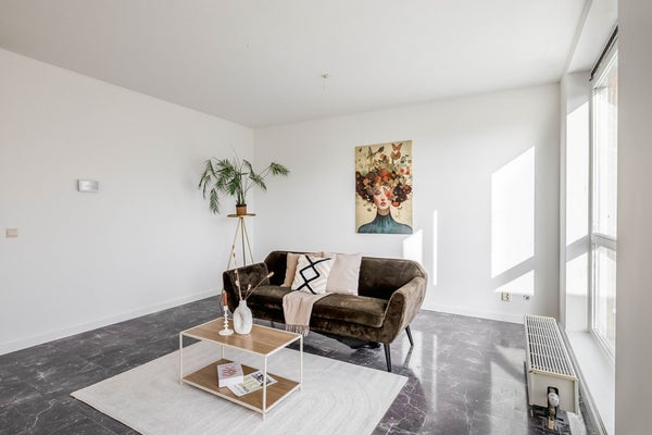 Op de tweede verdieping stap je de lichte woonkamer binnen. Dankzij de grote raampartijen stroomt het daglicht hier rijkelijk naar binnen en voelt de ruimte heerlijk open aan. Vanuit de woonkamer loop je zo het balkon op het westen op. Hier geniet je na een lange dag van de middag- en avondzon – drankje erbij en ontspannen maar!